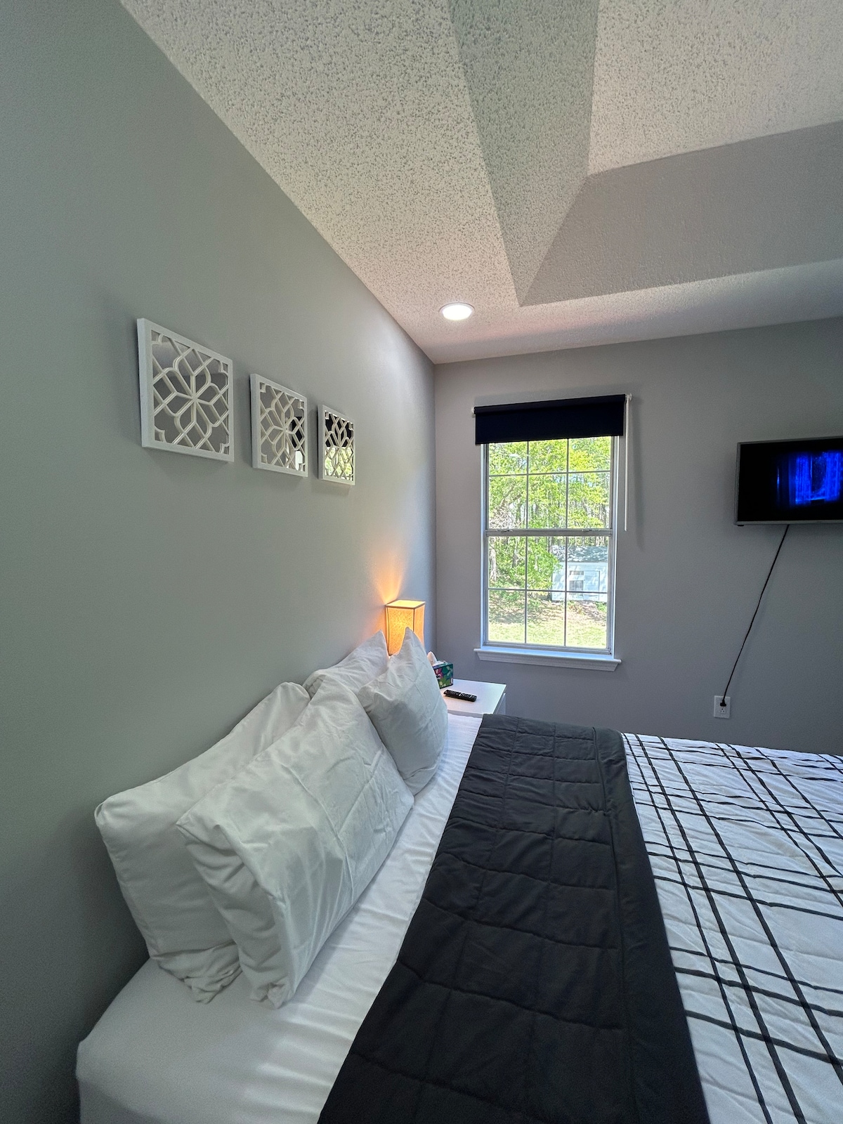 Добро пожаловать! Эта недавно отремонтированная, уютная, чистая квартира 2024 года идеальна для всех. Наслаждайтесь личным пространством и входом с красиво меблированной спальней с телевизором Smart TV, элегантной мраморной ванной комнатой с необходимыми туалетными принадлежностями и личной задней террасой. Полностью оборудованной кухни нет, но есть мини-холодильник, микроволновая печь и кофемашина. Квартира на цокольном этаже с одним тихим жильцом наверху. В нескольких минутах от озера Ланье, центра города Шугар-Хилл, троп и парков, а также торгового центра Джорджии. С нетерпением ждем вас!