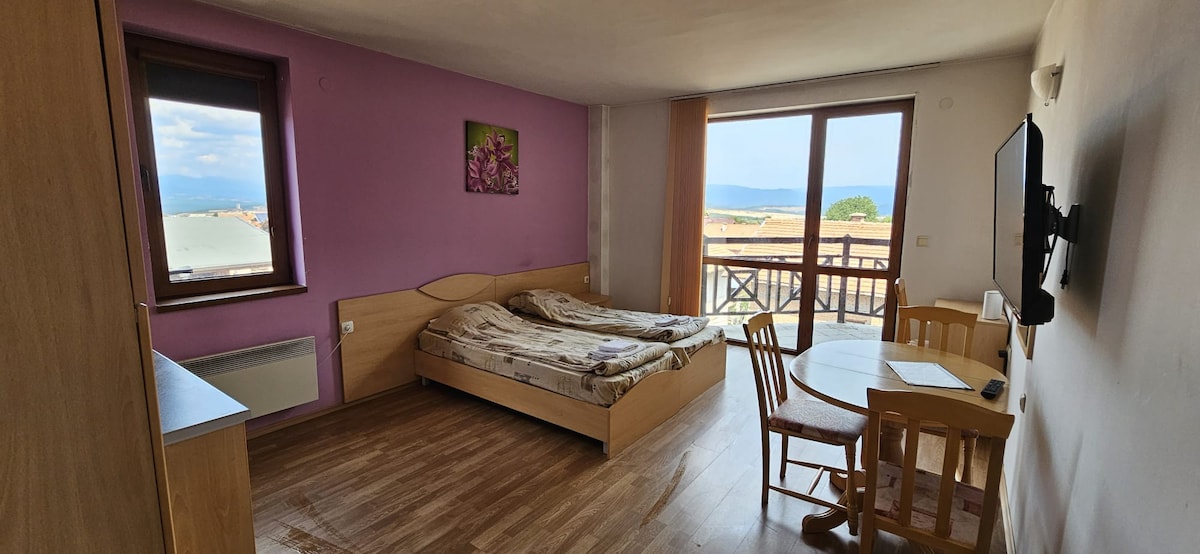 Violet is a comfortable and practical apartment. It includes one bedroom, bathroom , kitchenette , seating area. The sofa stretches. WiFi connection is really fast, television. Violet offers you all needed conditions for you stay in Sofia. It is near metrostation, supermarkets and great reataurants. The location is in the centre of Sofia, so you can have some intersting walks around the arheological places.