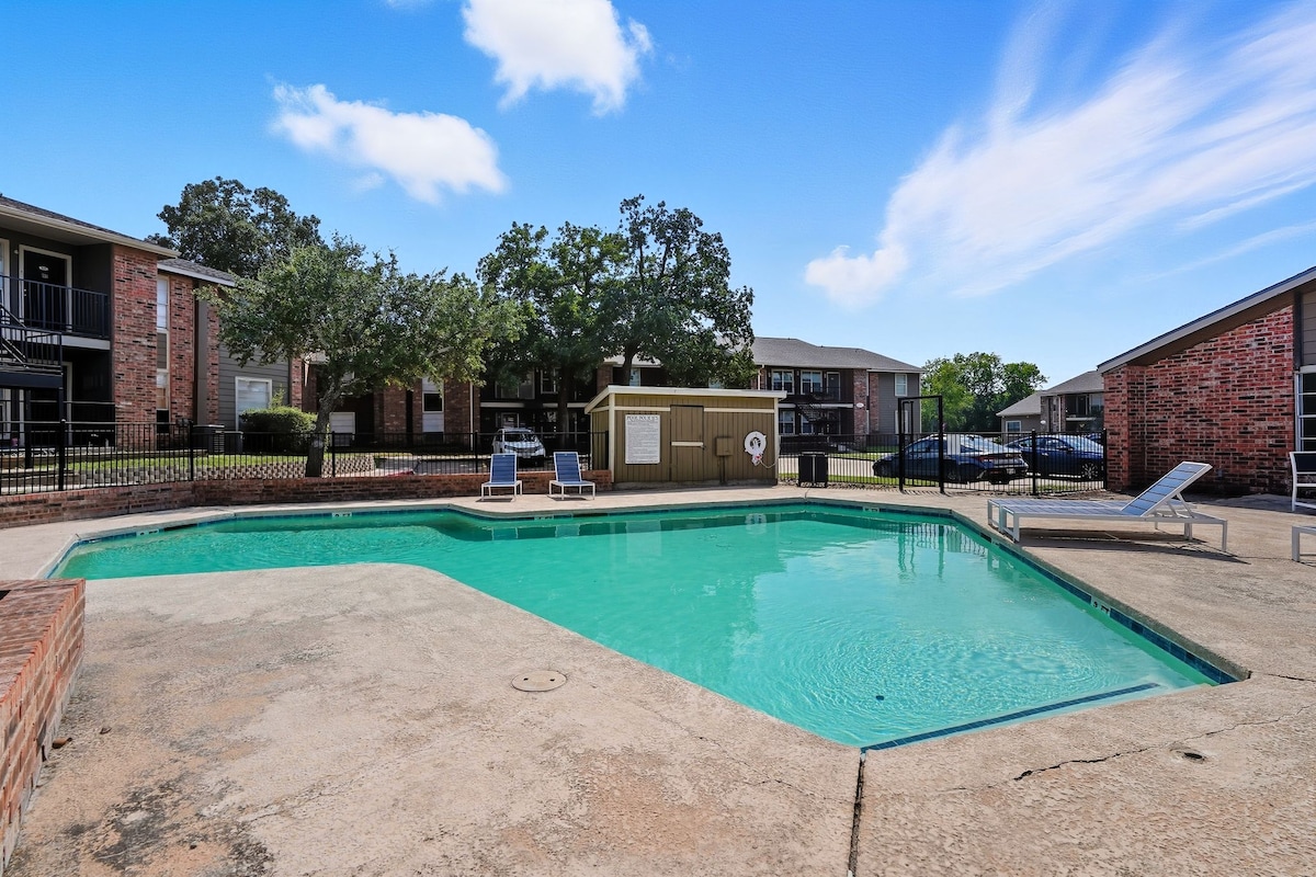Наша светлая и гостеприимная квартира находится в центре исторического центра Брайана. В нескольких шагах от местных ресторанов, кофеен и бутиков вы найдете живую музыку, художественные галереи и насладитесь первой пятницей! Внутри вы найдете уютное жилье с полноценной кухней, Wi-Fi и смарт-телевизорами. Расслабьтесь на патио под звуки центра Брайана. Вы найдете идеальное сочетание стиля и удобства. Прогулка до ресторанов, магазинов и ночных клубов - и всего 10 минут до Texas A&M & Kyle Field!