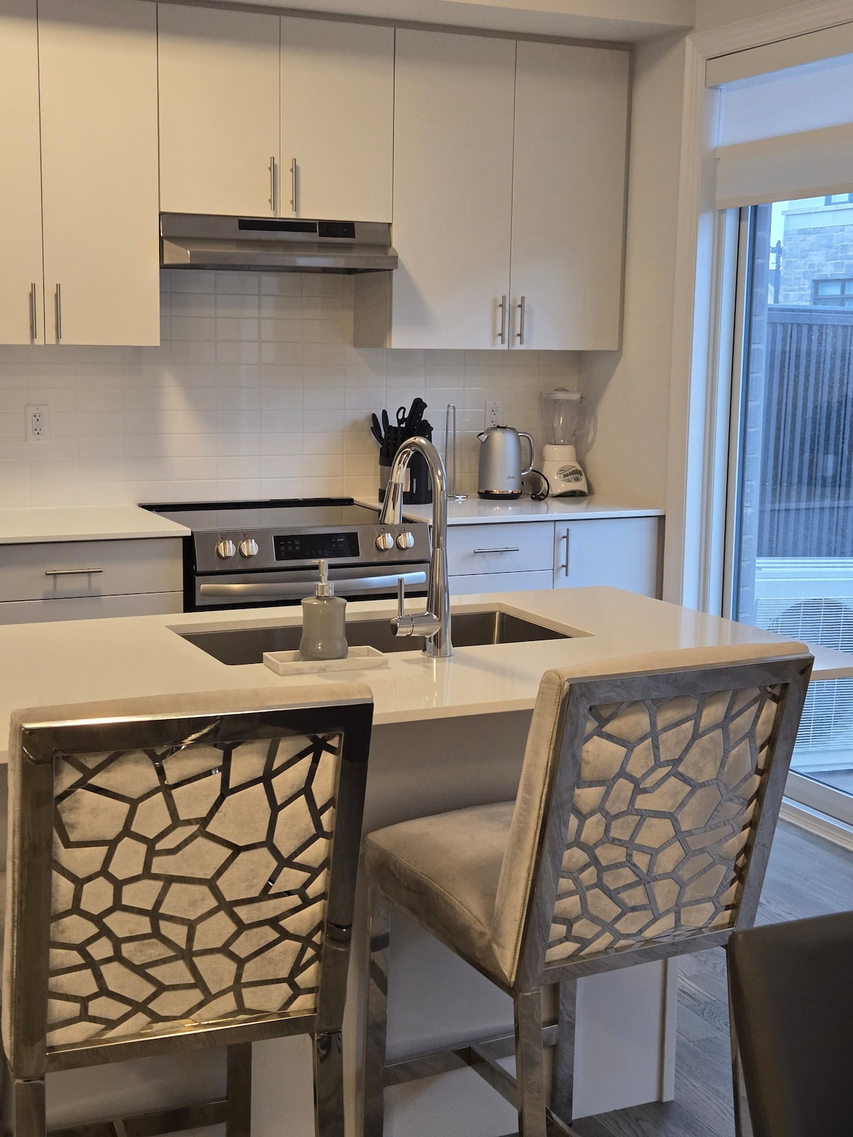 Добро пожаловать в Браунстоунз в Берлингтоне! Наш уютный дом хорошо меблирован, что обеспечивает вам расслабляющее пребывание и включает в себя полностью укомплектованную кухню, двуспальную кровать размера King size, светлую гостиную, наполненную естественным светом, и собственную террасу на заднем дворе. Жилье расположено прямо напротив торгового центра Mapleview и всего в нескольких минутах езды или на автобусе от красивой набережной и других популярных достопримечательностей, таких как Королевский ботанический сад, парк Спенсер-Смит и арт-центр Берлингтона. С нетерпением жду вас!