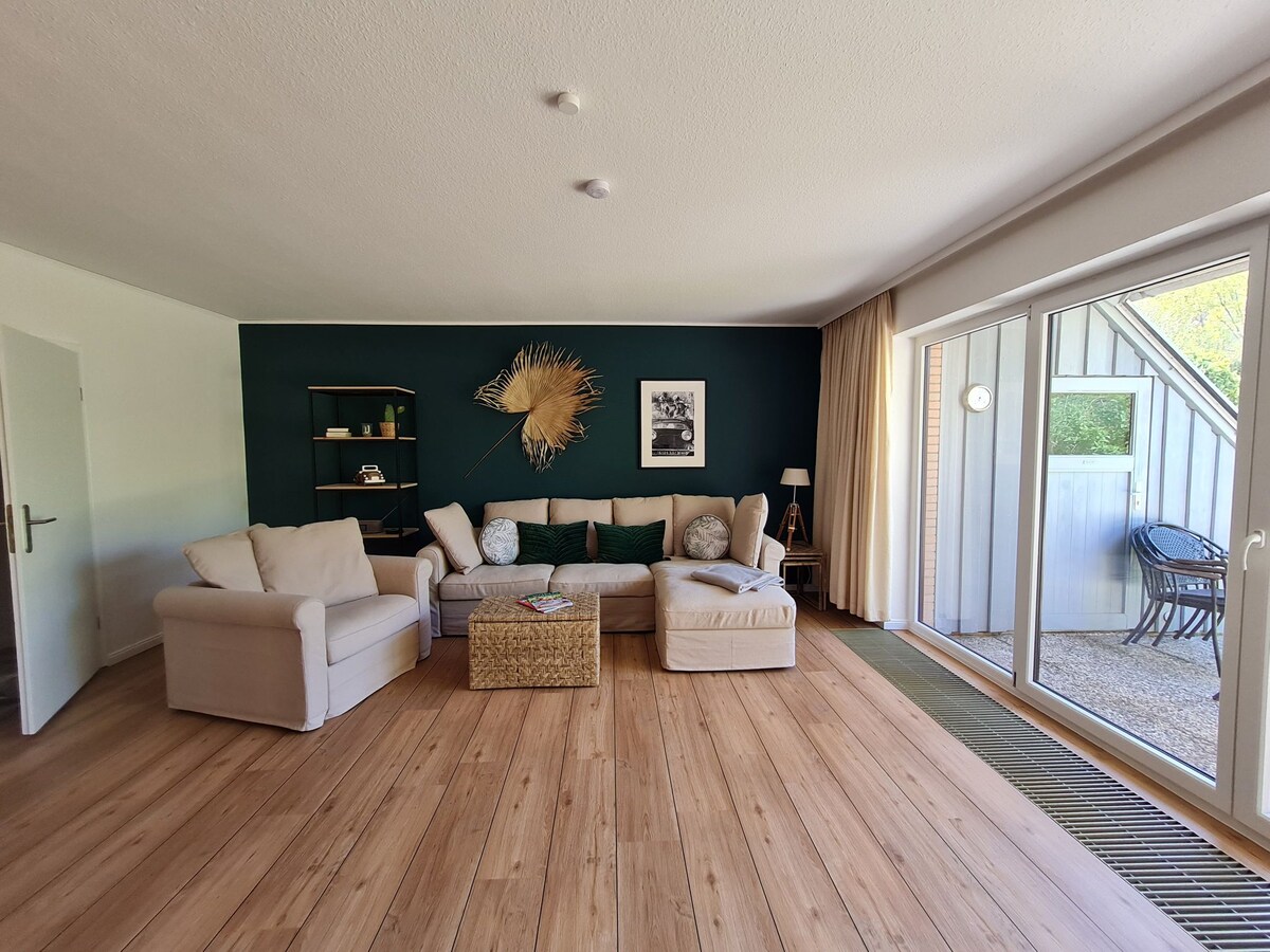 Добро пожаловать в - Квартира II: Квартира расположена примерно в 5 минутах ходьбы от дамбы Северного моря и семейной лагуны. В современной меблированной квартире на чердаке с южной террасой вы можете провести самое красивое время года. Гостиная с телевизором, диваном-кроватью и обеденной зоной, новая кухня с посудомоечной машиной и спальня с гардеробной, телевизором, пружинной коробкой и детской кроваткой порадуют вас, а также ванная комната с душем и туалетом.