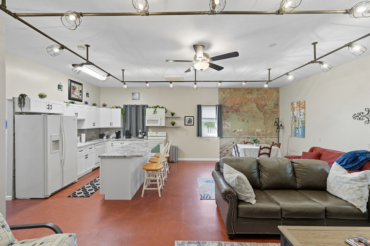 Великолепный люкс площадью 1500 квадратных футов в нашем полностью отреставрированном историческом здании, построенном в 1913 году. Жилье расположено в историческом центре Наполеона. До винодельни, пивоварни, кофейни, исторического ресторана и бара, а также до причудливых магазинов в центре города можно дойти пешком. В The Armory также есть художественная галерея, пространство для мероприятий. и парикмахерская.