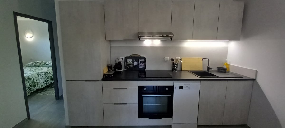 Жилье расположено в центре деревни, рядом со всеми удобствами. Вы будете размещены в здании конца XIX века с толстыми стенами и высокими потолками. Мы сосредоточились на качестве отделки этого жилья, чтобы вы чувствовали себя как дома: удобная кровать (160x200), качественное постельное белье, керамический душевой поддон, смягчитель воды, кофемашина Nespresso...