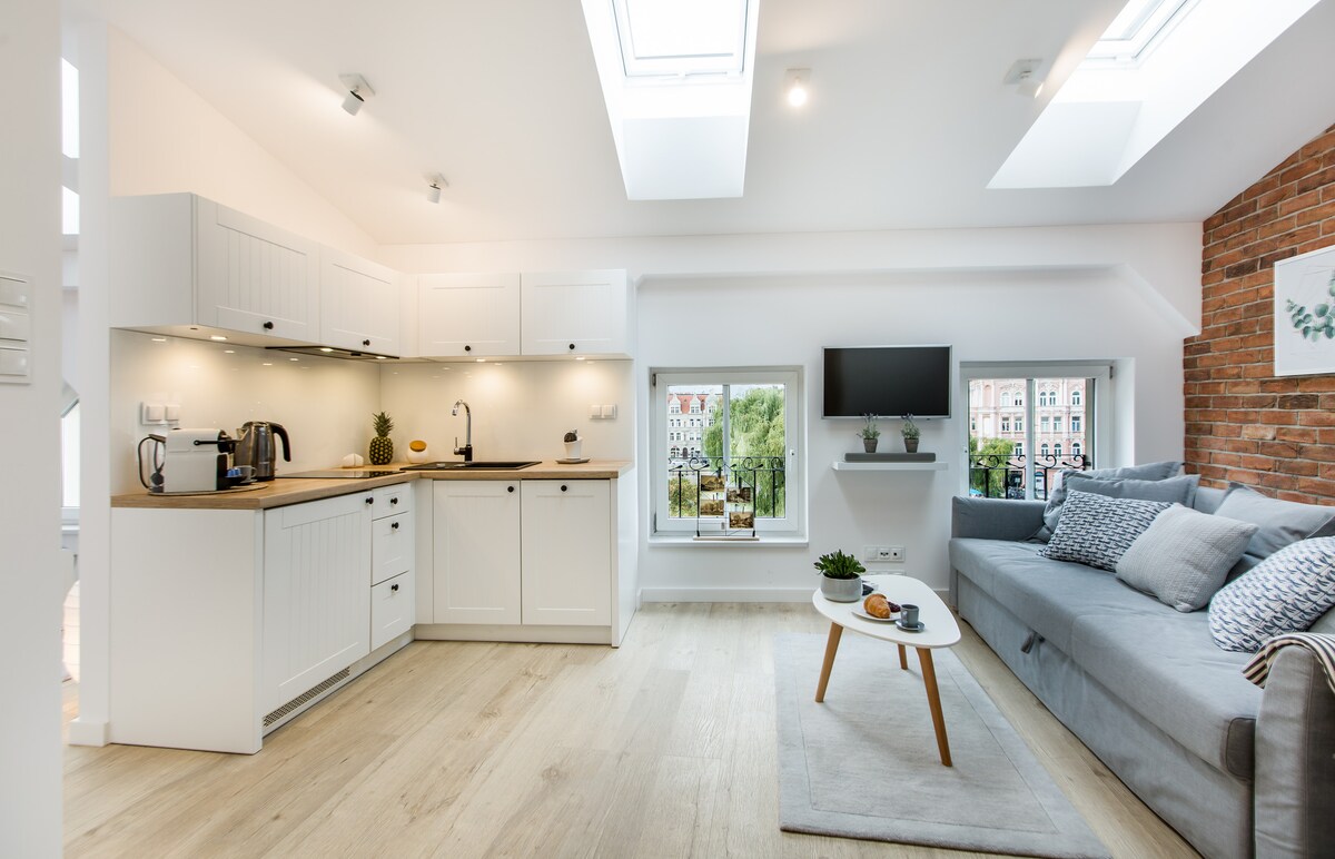 Приглашаем вас в наши апартаменты в центре Быдгоща. Мы многое сделали, чтобы вы чувствовали себя как дома, а ваши впечатления были уникальными и полными незабываемых, позитивных моментов. Это идеальная база для путешественников и туристов, а также отличное место для деловых поездок и удаленной работы. Мы предлагаем хорошо оборудованную кухню с кофе и чаем. Не беспокойтесь о утюге или фене. Вечером расслабьтесь перед телевизором, а с нашим путеводителем вы откроете для себя город :-) Мы выставляем счета-фактуры с НДС