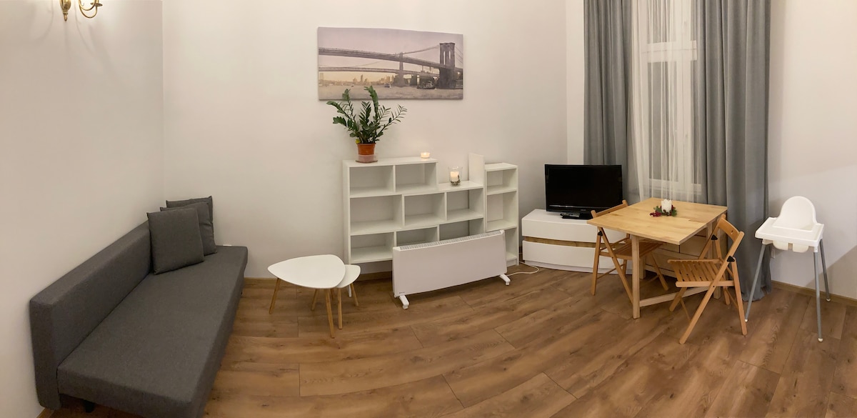 Приглашаем вас в наши апартаменты в центре Быдгоща. Мы многое сделали, чтобы вы чувствовали себя как дома, а ваши впечатления были уникальными и полными незабываемых, позитивных моментов. Это идеальная база для путешественников и туристов, а также отличное место для деловых поездок и удаленной работы. Мы предлагаем хорошо оборудованную кухню с кофе и чаем. Не беспокойтесь о утюге или фене. Вечером расслабьтесь перед телевизором, а с нашим путеводителем вы откроете для себя город :-) Мы выставляем счета-фактуры с НДС