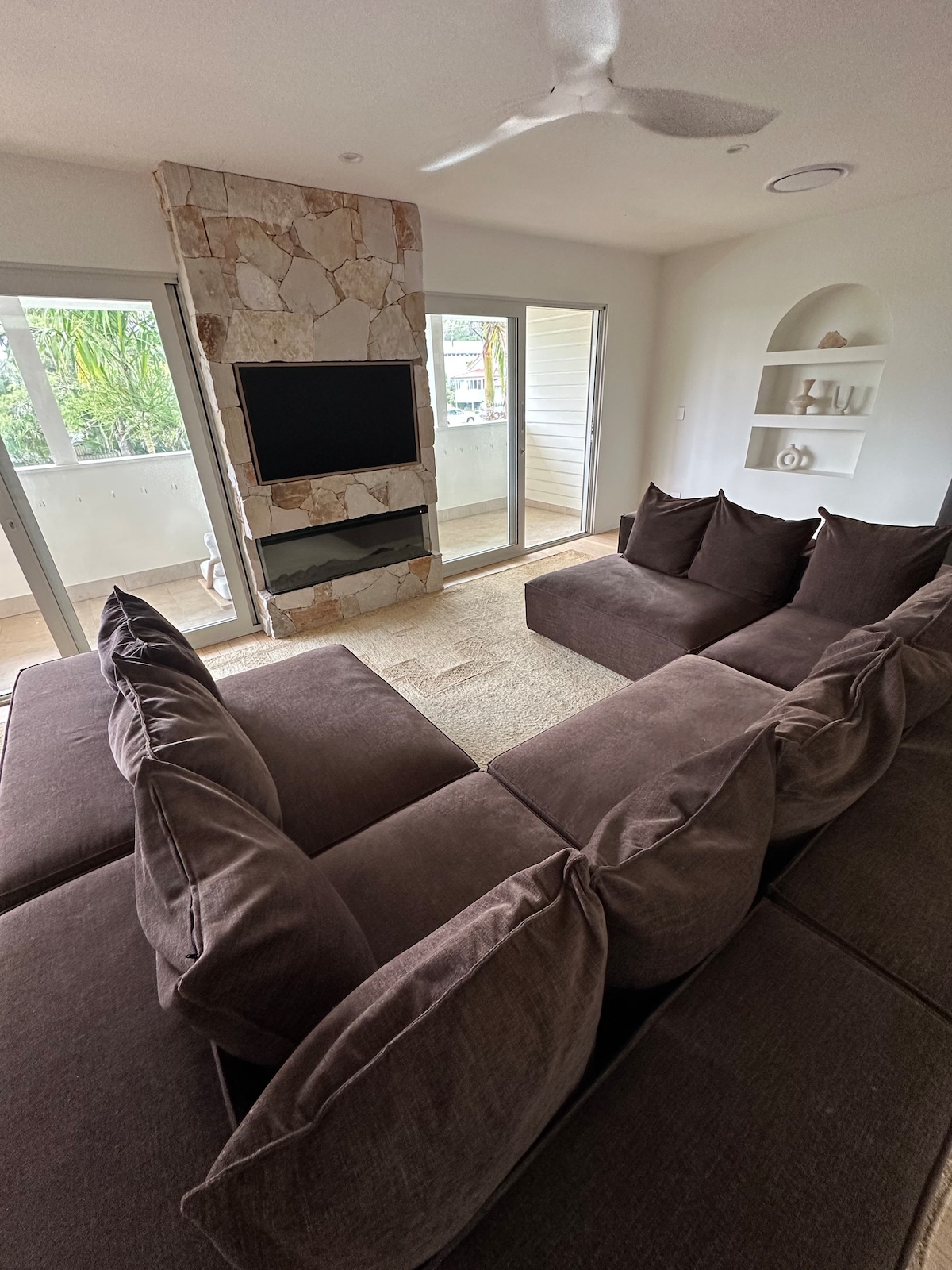 Красивое, спокойное пространство с очень удобными кроватями размера King size и Queen size в 2 спальнях, качественный диван-кровать размера Queen size в солярии по запросу — высококачественное постельное белье (и полотенца). Дом светлый, проветриваемый, с классной шикарной атмосферой. Комнаты выходят на 2 благоустроенные дворики и 3-й закрытый сад, обеспечивающий легкий поток на открытом воздухе в помещении. Новый ремонт во всех комнатах, окна, французские двери, ставни и жалюзи. До пляжа легко дойти пешком. Поблизости находится местная деревня. Залив Байрон находится всего в 5 км. Гибкое время прибытия/выезда, если это возможно.
