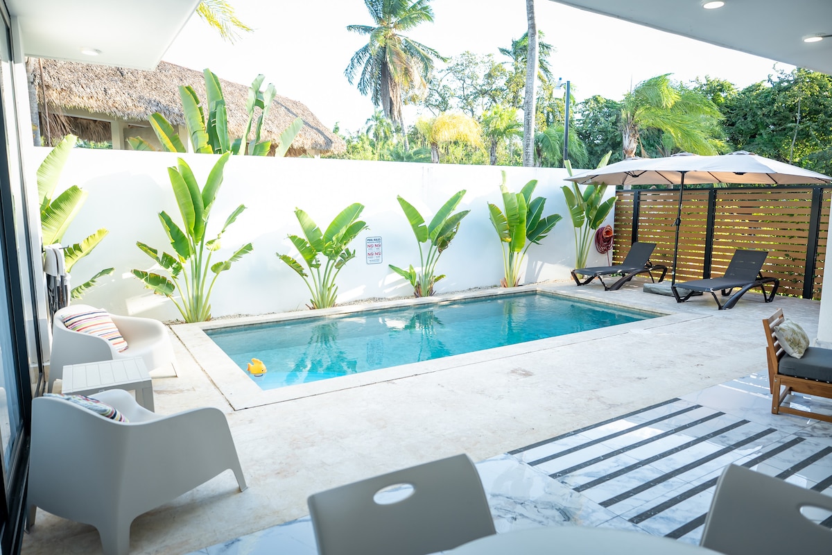 Насладитесь роскошью на этой совершенно новой современной вилле, всего в нескольких минутах ходьбы до пляжа. В вашем распоряжении 3 отдельные главные спальни, каждая с собственной ванной комнатой, кондиционером и потолочным вентилятором. Отдохните в частном бассейне с водопадом, развлекитесь у открытого гриля и насладитесь элегантной открытой планировкой. Идеальное место для семей или групп, ищущих стиль, комфорт и первоклассное тропическое расположение. 5 минут пешком до тренажерного зала, аквапарка, Санта-Фе и пляжа. Забронируйте 3 ночи и получите 1 ночь бесплатно «ВСЕ 2025» упомяните это объявление.