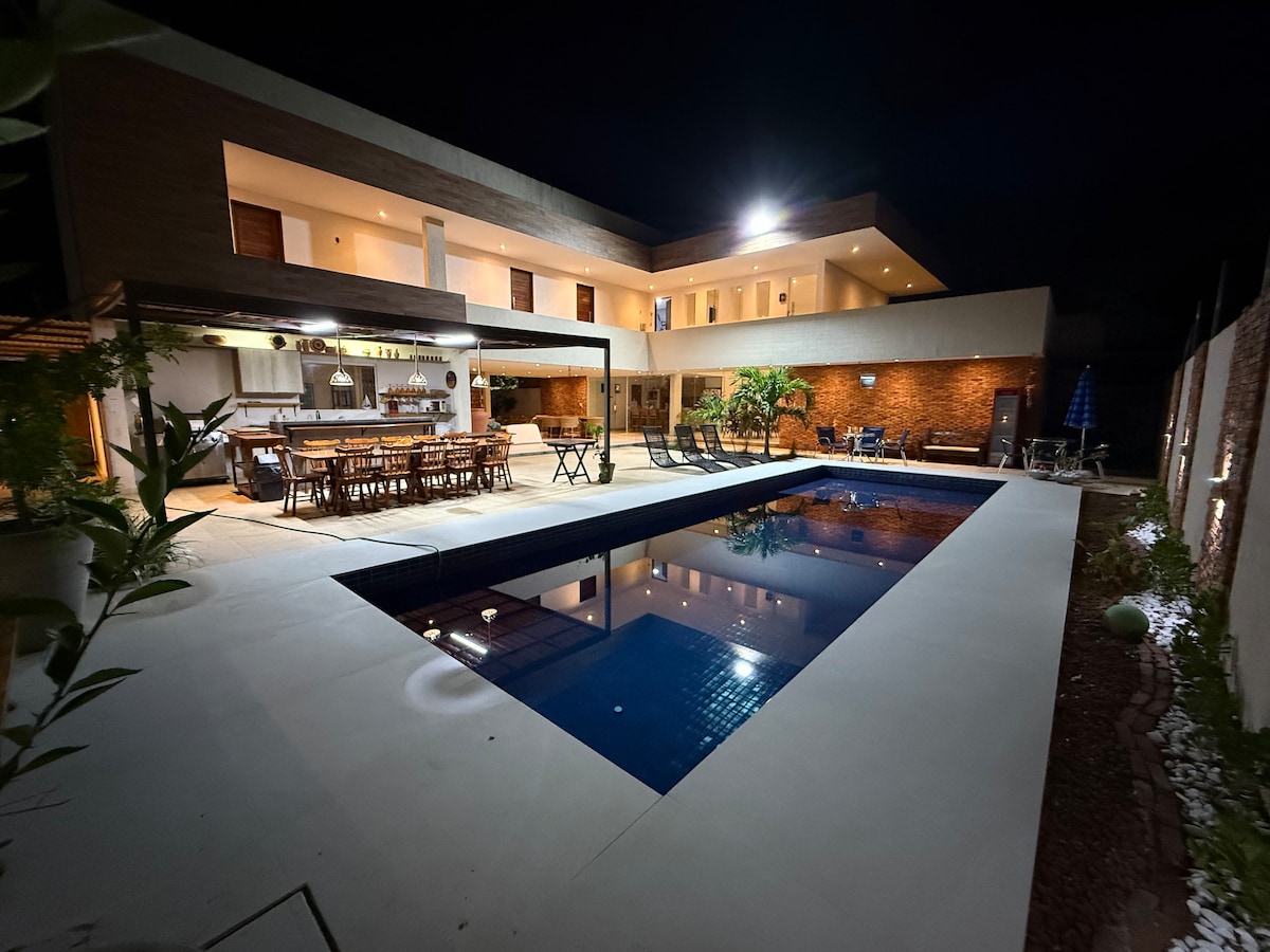 Комфортабельный дом, 7 спален, 6 ванных комнат, (на верхнем этаже три люкса и 1 не люксы с соседней ванной комнатой, на первом этаже два люкса и один не-люкс, на верхнем этаже мезонин, а на первом этаже - 50 м, терраса L, бассейн с 3 м в окружности, ванная комната с поддержкой барбекю, полностью оборудованная кухня площадью 620 м ²,все меблировано, хорошо расположено, Av.mar da Irish, Intermares, от 118 до 80 м от моря, рядом с супермаркетом, пекарня, круглосуточный банк, доступ для выдачи автомобилей
