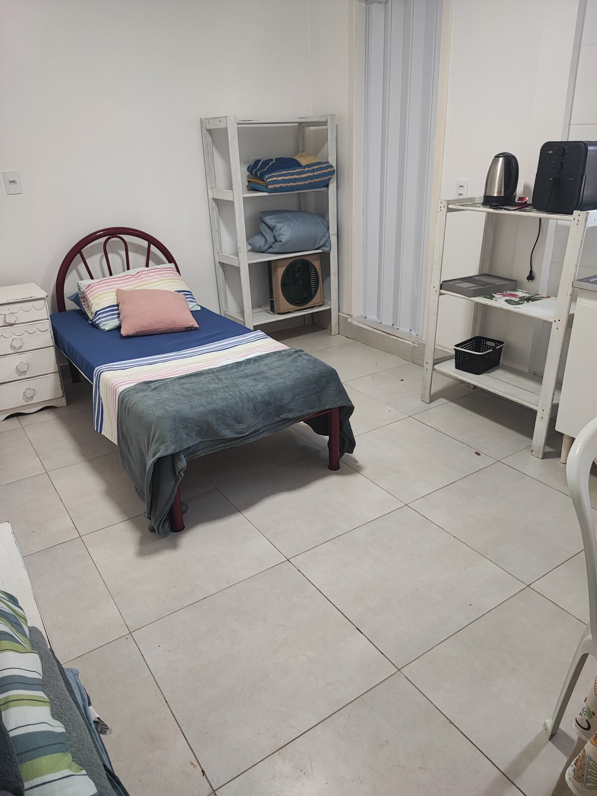 Relaxe neste espaço calmo e cheio de estilo. Apto oferece 2 🛏 cama de solteiro + 🛋 sofá-cama; as camas de solteiro podemos montar de casal. 🍽 cozinha equipada (geladeira, micro-ondas, fogão 5 boca, airfryer, sanduicheira, chaleira elétrica); varal de roupas; 🚿 Banheiro com secador; 🌐 internet fibra óptica; 🚗 pátio fechado com câmeras de segurança. Localização privilegiada, 950 metros universidade, 200 metros 🛒 mercados, 🍽 restaurantes, farmácias