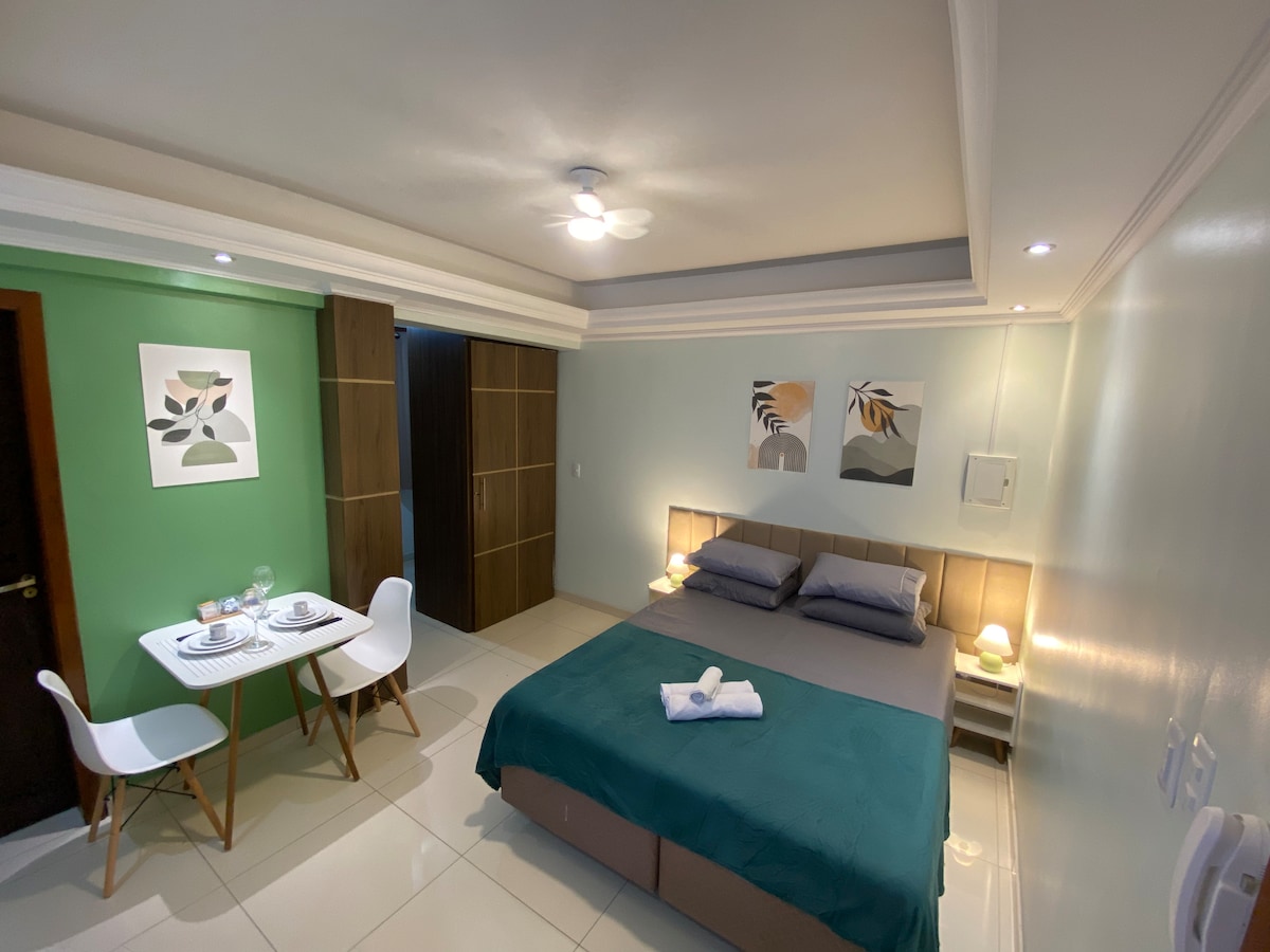 Отремонтированная студия в хорошем районе. Рестораны и магазины поблизости. Рядом с Shopping do Vale (200 м), Faculdade Cesuca (500 м), Câmara dos Vereadores (1,8 км), Brigada Militar/Corpo de Bombeiros/Parcão (1,5 км), Hospital Padre Jeremias (1,4 км). Находится на границе с Граватаи, отсюда легко добраться до Порту-Алегри и близлежащих городов. — Высококачественный матрас Emma. — 55-дюймовый телевизор Smart TV с потоковыми и кабельными каналами. — Кровать размера Queen size. - оборудованная кухня; — Парковочные места перед зданием.