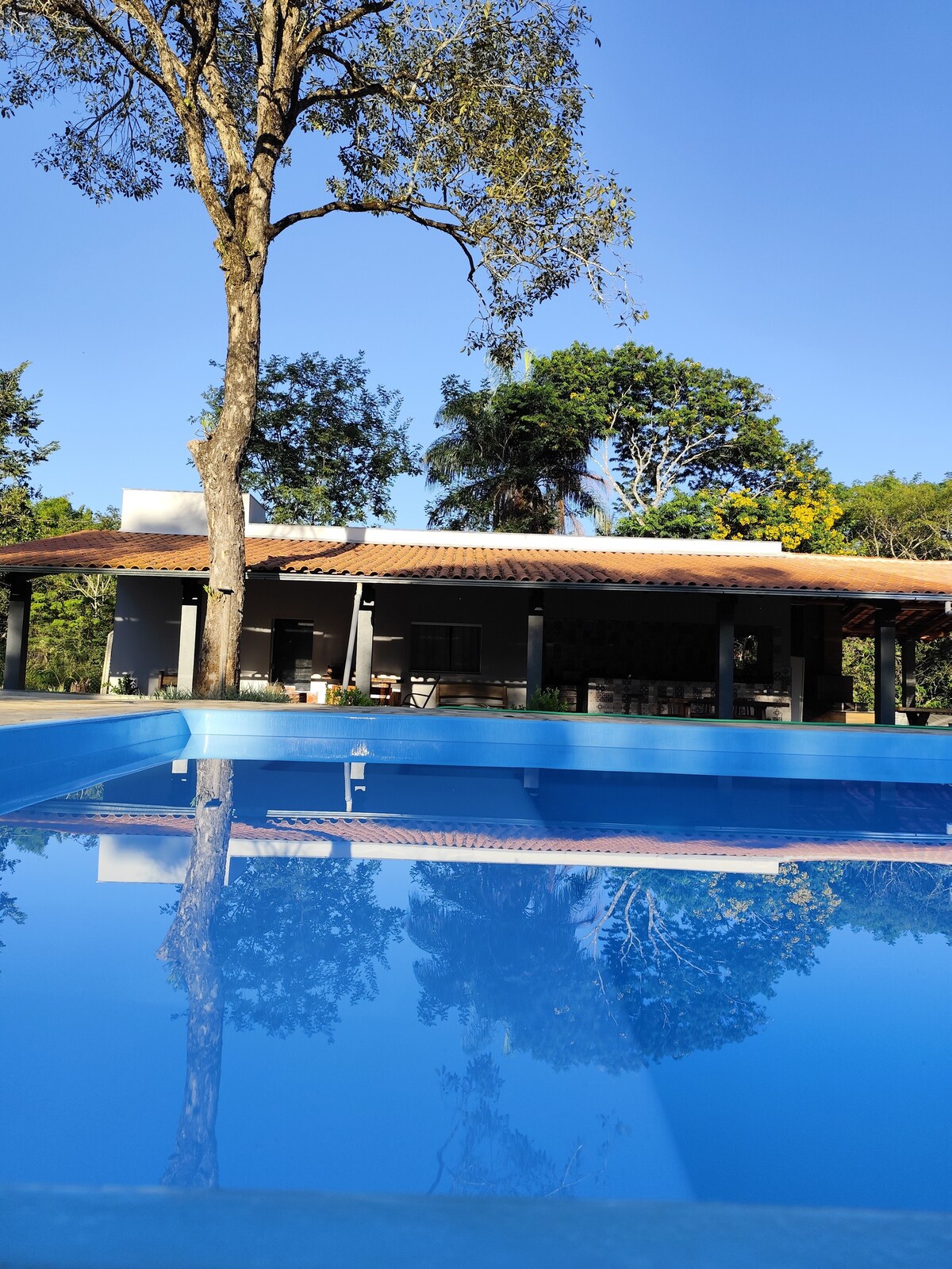 Viva momentos inesquecíveis neste lugar único e ideal para famílias. Venha relaxar e fugir do estress da cidade! Nossa propriedade possui piscina com sauna integrada, hidro integrada a piscina, cascata, sinuca, churrasqueira, espaço amplo gramado, casinha da árvore. O espaço conta com dois quartos, sendo um quarto com uma cama de casal, uma de solteiro e tv de 32 polegadas. O outro quarto possui duas beliches. E para sua comodidade, oferecemos Wi-Fi de alta velocidade em toda a propriedade.