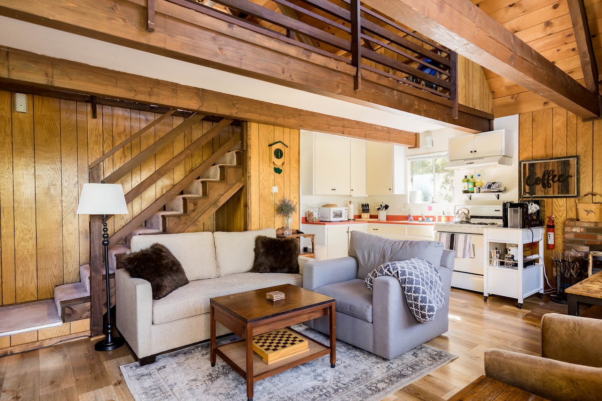 Расположенная среди кедров и дубов в лесах Сосновой бухты, пусть эта "хижина в небесах" станет вашим горным отступлением. Просторное крыльцо вмещает стволы высоких сосен, придавая ему ощущение домика на дереве. Имеется стол для ужина на свежем воздухе, L-образные сиденья на открытом воздухе и качели только для взгляда на звезды. Закройте себя в тишину; единственный звук, который вы услышите, это звук кормления дятлов и орехов, или счастливых белков, рыдающих вокруг. Отпразднуйте дикую природу в этом уютном уединенном местечке!