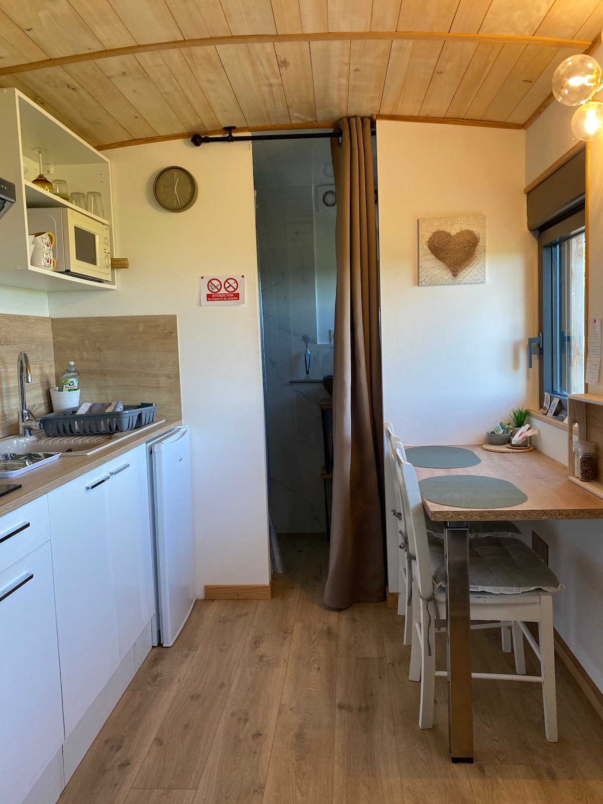 Наш микродом, расположенный в маленькой деревне в Лоте, позволит вам отдохнуть на ночь, выходные или дольше. В ней могут разместиться от 2 до 4 человек со всеми необходимыми удобствами, кухонная зона (холодильник, микроволновая печь, кофеварка Tassimo...), зона отдыха, ванная комната (банные полотенца не предоставляются) и туалет. Предоставляются две спальни в мезонине, 140 кроватей, простыни. Tiny находится в четверти часа от всех удобств и недалеко от многих туристических объектов