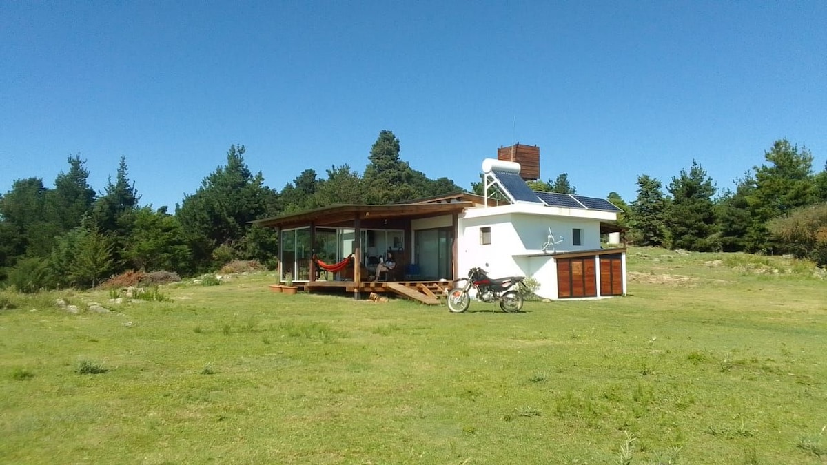 Relajate en este alojamiento único y tranquilo. Casa de campo autosustentable ubicada en un predio de 25 has. exclusivas para vivir absoluta privacidad. En un marco de pura naturaleza serrana con vistas increíbles, bosques variados, arroyos y acceso privado al Rio del Medio. Entorno ideal para desconectarse de la rutina diaria. Se abastece con energía solar. Tiene internet.