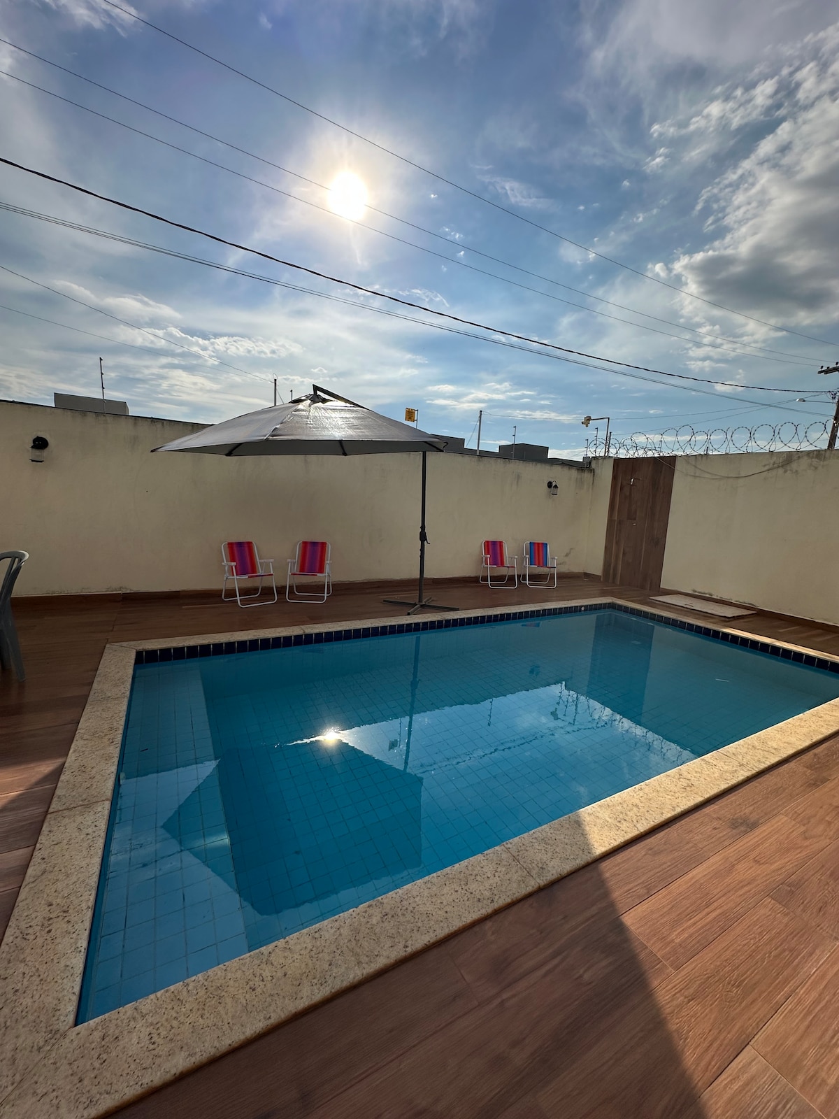 Дом с широкой зеленой зоной, все интегрировано для вашего комфорта и веселья, будь то семья или с друзьями, все продумано с большой любовью. *** ВНИМАНИЕ *** Семейная атмосфера, мы не допускаем громкий звук со звуковой коробкой или автомобильным звуком У нас есть два люкса, один из которых с двуспальной кроватью, а другой с двуспальной кроватью размера Queen size плюс односпальная кровать. Sala - диван-кровать, телевизор с Sky. Придомовая территория - кухня для гурманов с барбекю, рядом с бассейном, а также социальная ванная комната.