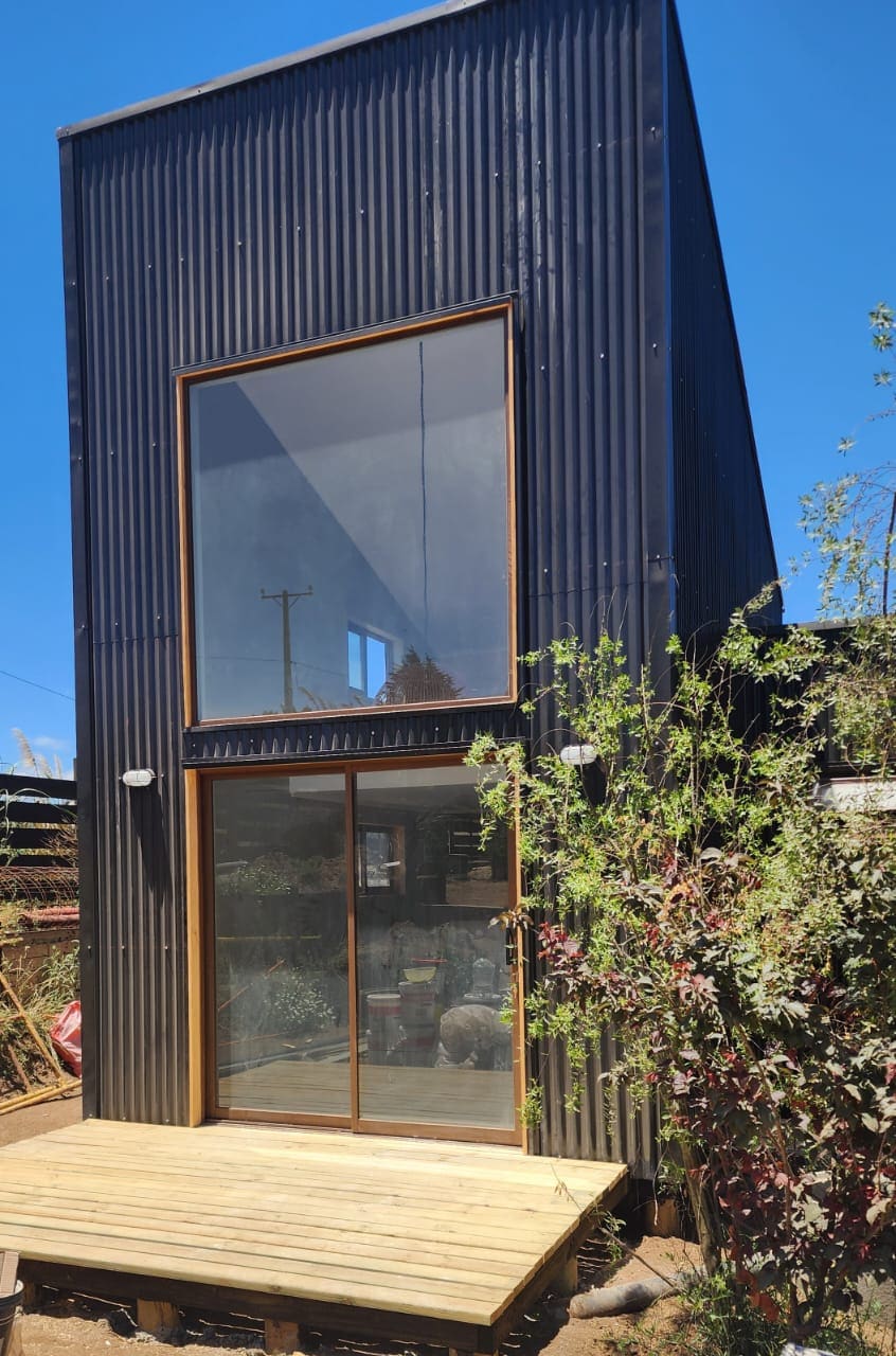 Cabaña rustica de madera y botellas, especial para desconectarse. Cómoda para 2 personas, cama de 2 plazas con sabanas incluidas , toallas de mano en el baño. Cocina encimera y mini refrigerador, parrilla y horno en un espacio en común que se puede utilizar con previo aviso. A 5 minutos de la entrada playa el Tebo, 15 de playa Cau-Cau y 15 de La caleta (caminando) en auto a unos 5 min. Estacionamiento compartido ya que la cabaña queda en el patio de nuestra casa.
