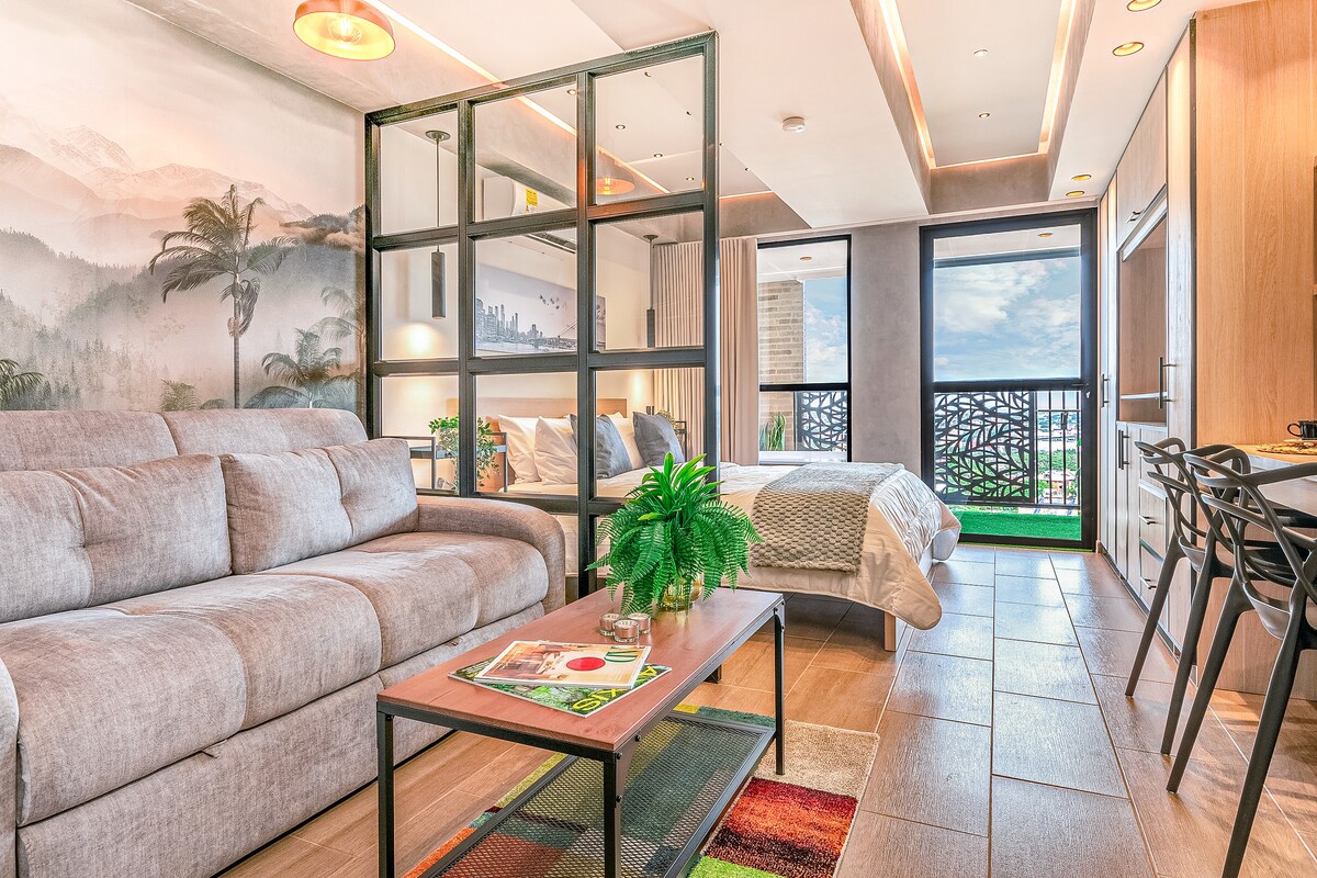 ** ЭКСКЛЮЗИВНОЕ ЖИЛЬЕ БЕЗ СБОРОВ ЗА УСЛУГИ AIRBNB ** Этот лофт в индустриальном стиле площадью 38кв. м с частным джакузи и захватывающим видом на Кали, идеально подходящий для 4 человек, полностью оборудован для вашего комфорта. В здании есть такие удобства, как коворкинг, тренажерный зал, джакузи, зона для пикника, кинотеатр на открытом воздухе и многое другое. Всего в нескольких минутах от парка Перро, медики и спортивной зоны, что делает его идеальным местом для вашего пребывания!