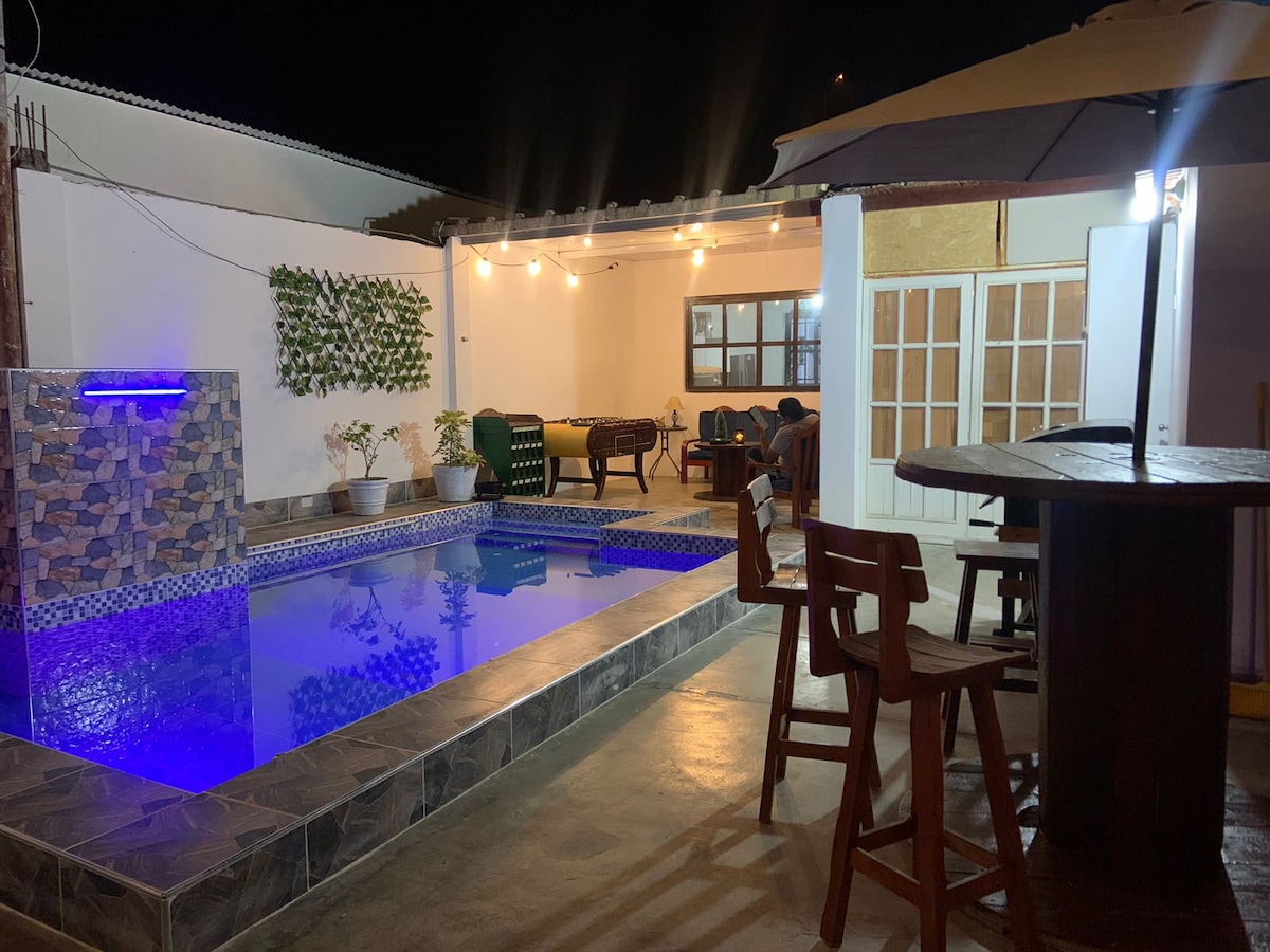 Это пляжный дом площадью 200 кв. м с бассейном с освещением, водопадом, 2 террасами, грилем и цилиндром на втором этаже, в очень тихом и свободном от городского шума, очень близко к пляжу (6 небольших кварталов) к северному берегу Сан-Бартоло, идеально подходит для тех, кто хочет отдохнуть и отдохнуть от городского стресса. Только в праздничные даты, такие как канун Нового года, цена варьируется, они должны сначала проверить.
