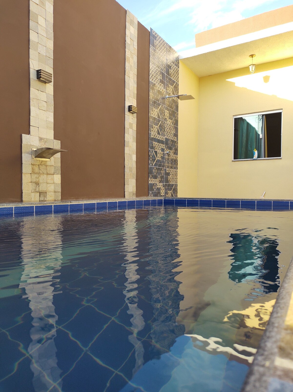 Расслабление всей семьей в этом тихом доме. Cozy do Poeta - это отпускное жилье, расположенное в Residencial Interlagos, отличном районе Canindé de São Francisco-SE. В доме есть гостиная с двуспальной кроватью, стульями и телевизором, американская кухня с плитой и холодильником, две спальни с кондиционером и двумя двуспальными кроватями в каждой спальне, одна из которых с собственной ванной комнатой, прачечной с гамаком и душем, ванной комнатой, вентиляционной зоной между кухней и гостиной, зоной отдыха с бассейном.