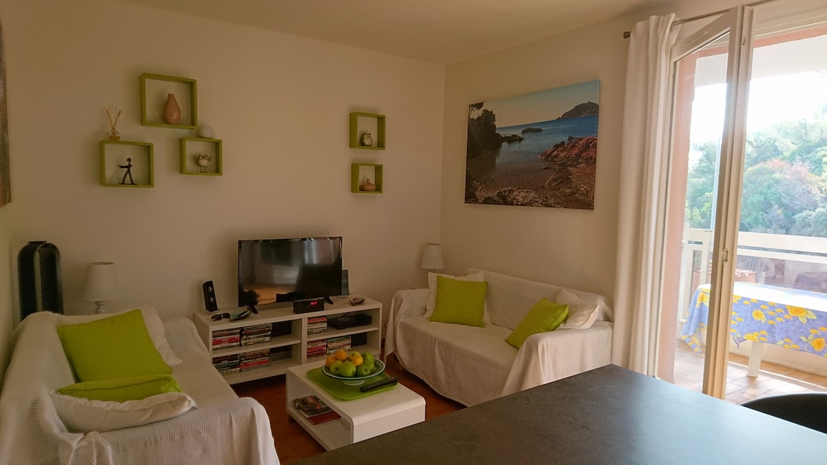 🌴Отдых, спокойствие, открытия… вы в нужном месте… эта превосходная студия предлагает невероятный вид на море!!! Представьте, что вы просыпаетесь, закат... Состоит из качественных материалов и полностью оборудовано 🌵Вы можете насладиться диким пейзажем Эстереля, предлагающим великолепные походы, не говоря уже о пляже Виадук (4 минуты ходьбы), а также бухте Сен-Бартелеми. Также есть железнодорожный вокзал (11 минут пешком). Незабываемое пребывание, новая история...