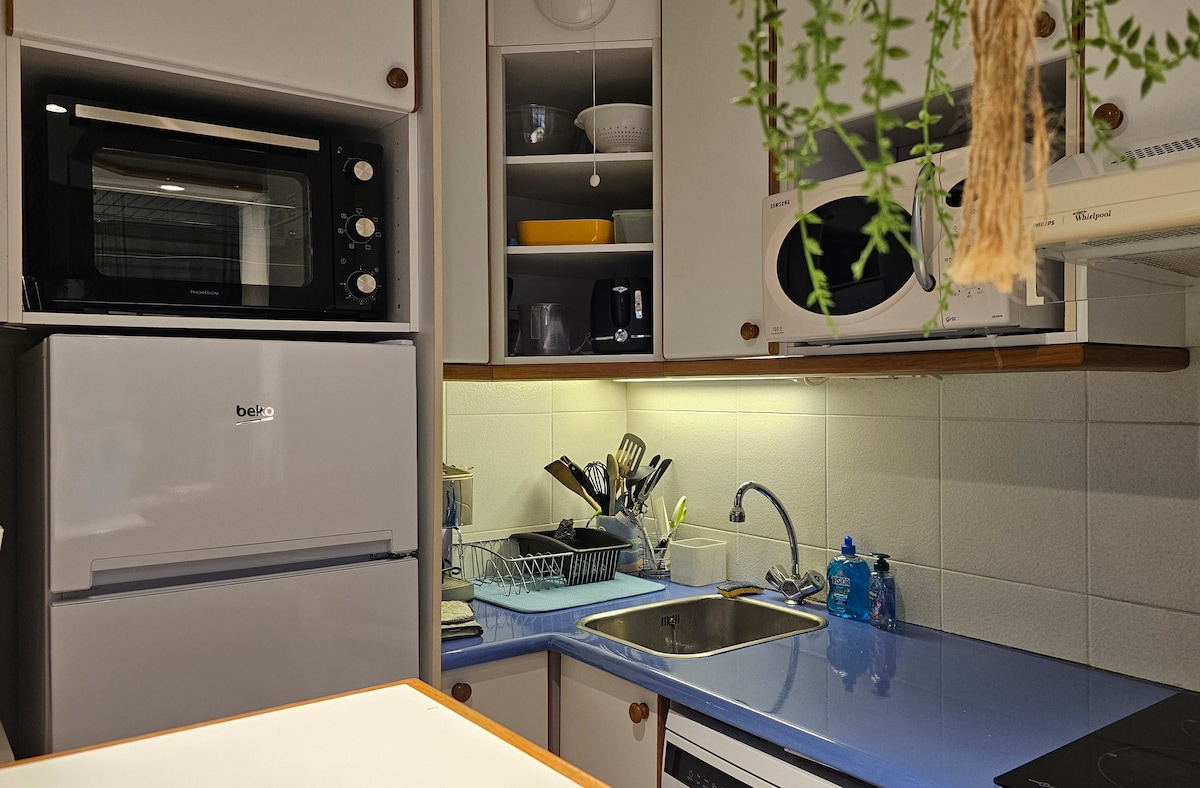 Квартира с кондиционером, отремонтированная площадью 23 кв. м в деревне M4 с видом на море в деревне Эстерель. Доступ к 5 бассейнам, развлечениям, билеты на поезд включены! Очень легко добраться (на первом этаже), частная парковка, магазин и остановка поезда поблизости. Диван-кровать, двухъярусные кровати, ванная комната, посудомоечная и стиральная машины, оборудованная терраса, ключ от Wi-Fi 4G. Возможность предоставления постельного белья (простыней и полотенец) за 10 евро за кровать и/или уборки за 50 евро оплачивается через Airbnb, поэтому она добавляется к общей цене.