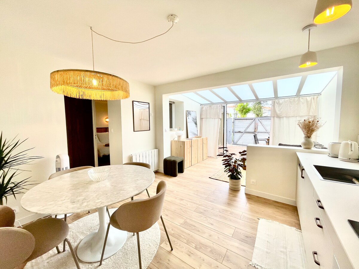 Очарование современной и комфортабельной хижины, увлеченно отремонтированной в духе моряка, вилла Le Petit Marsouin с террасой в окружении небольшого сада, идеально подходит для семьи из 4/5 человек. Дом расположен менее чем в 300 метрах от пляжа и рыбацкого порта и в 2 километрах от центра города Капбретон и Оссегор. Откройте для себя множество велосипедных маршрутов. Прогуляйтесь или прокатитесь на велосипеде до пляжей, гавани и торговых улиц, забудьте свой автомобиль!