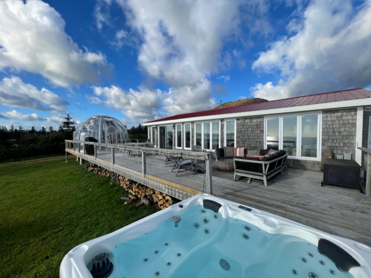 Построенный в 2018 году, наш уютный коттедж вмещает максимум 6 гостей, у которых будет полный доступ к 2 спальням плюс 1 лофт! Есть балкон на втором уровне, где вы можете поймать утренний восход солнца, а с передней палубы открывается вид на океан с удивительными закатами. Наш коттедж является идеальным местом для спокойного отдыха, в нескольких минутах ходьбы от пляжа Сен-Пьер, в нескольких минутах ходьбы от поля для гольфа Le Portage и Национального парка. ** Наш коттедж находится примерно в 50 футах от постепенно спускающегося на 8–10 футов каменистого пляжа внизу.