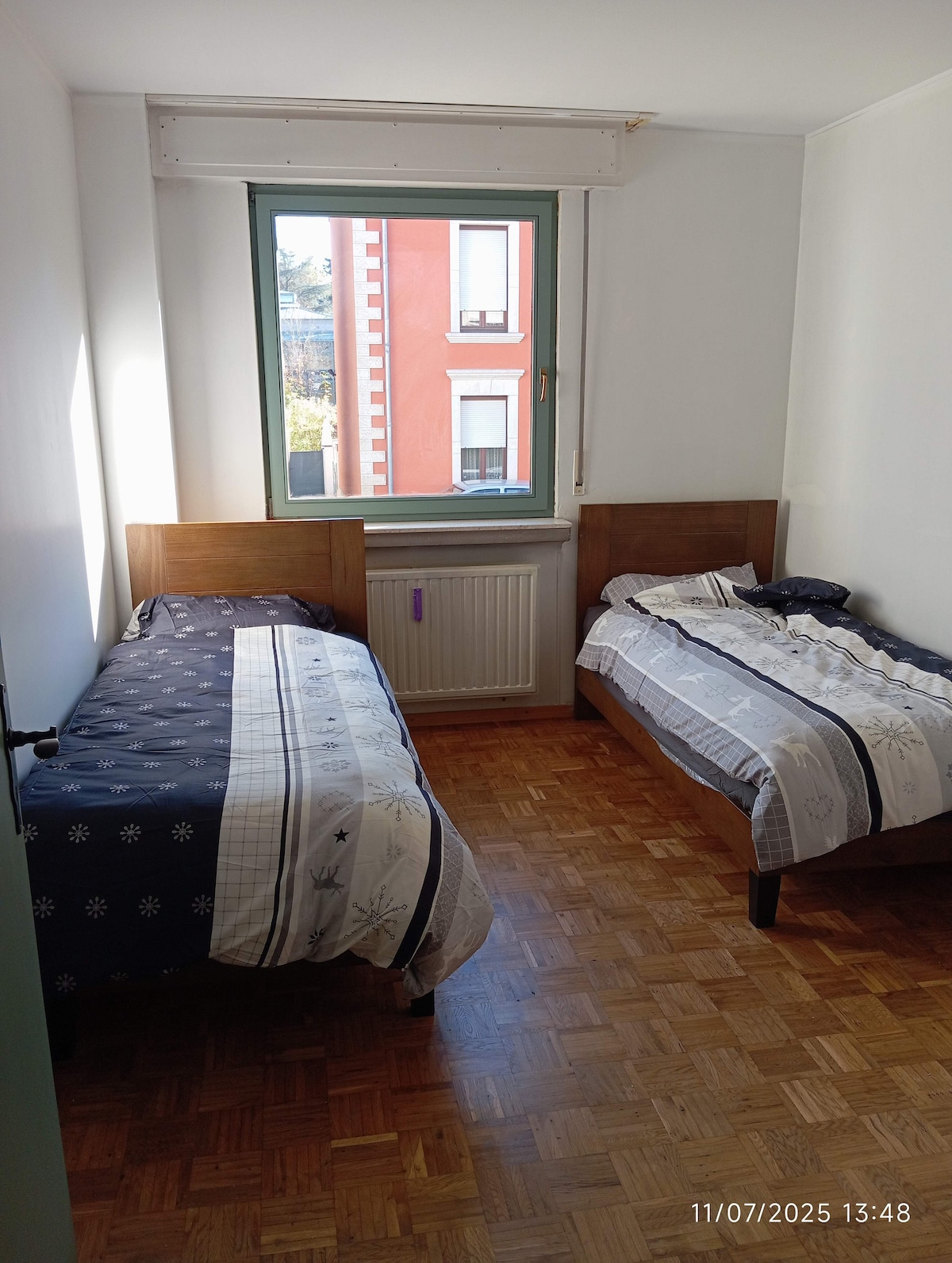 Nice furnished flat situated close to the railway station in Bertrange (L) and the italian restaurant, The bus-stop and supermarket are also very close. First level, with elevator, outside parking place, all windows are on the streetside. This flat is composed like this: - Living room with a little balcony - One bedroom - Equipped kitchen - Bathroom and separated WC WiFi, wash machine, heating, ventilator, bedlinens, cutlery and dishes. Only short term renting.