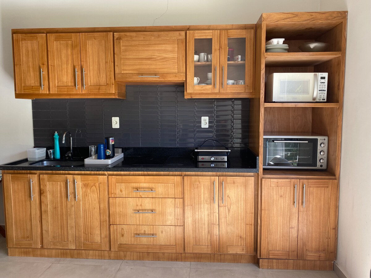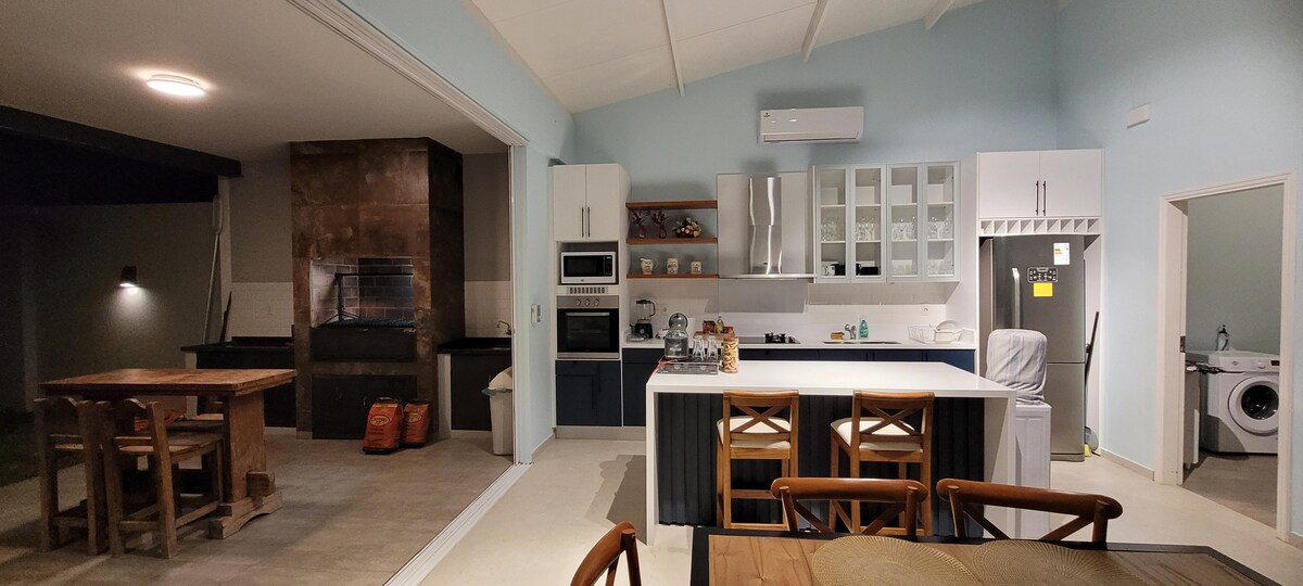 Отпускная резиденция с просторными и солнечными комнатами. Большие окна во всех комнатах с видом на общие дворы с деревьями. Кондиционер в жаркие дни и в холодные дни красивый камин или плита снаружи. Большая галерея с квинчо, бильярдным столом, пинпонг. Волейбольная площадка и терраса на дереве. Общий внутренний дворик с просторной парковкой, быстрый Wi-Fi, телеканалы, Netflix и т. д.