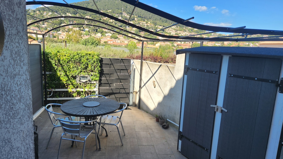Красивая студия, классифицируемая как меблированное туристическое жилье, расположена в Каркейранне (10 км от аэропорта и железнодорожного вокзала Йер-ле-Пальмье), рядом с виллой в очень тихом жилом районе, недалеко от моря. Отдельный вход, гостиная с видом на красивый бассейн. 5 минут пешком до пляжа и небольшой пристани Каркернана. После парковки автомобиля до всего можно дойти пешком ;-)