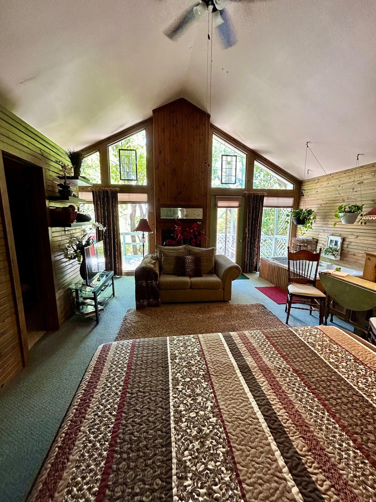 Отдохните и отдохните в этом тихом оазисе, расположенном в парке. Уютный коттедж имеет открытую планировку с СОБСТВЕННОЙ ГИДРОМАССАЖНОЙ ВАННОЙ и забором для уединения. Всего в 4 милях от центра Эврика-Спрингс. Рядом рестораны, местная пивоварня, антикварные магазины и магазины. Сбегите от суеты центра города и остановитесь всего в нескольких минутах ходьбы в более спокойной обстановке. Мини-холодильник, микроволновая печь, кофе, посуда, телевизор, DVD-плеер, фильмы, постельное белье - все включено.