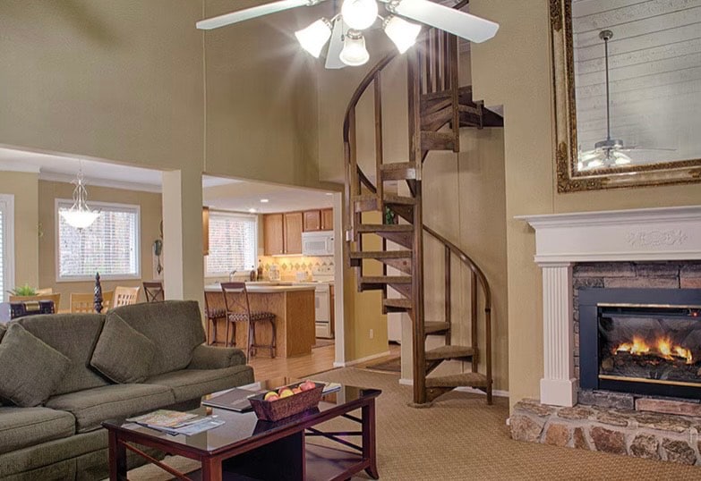 CW Villas at Fairfield |1BR/1BA King Balcony Suite • Size: 1090 - 1090 • Kitchen: Full • Baths: 1.50 • Accommodates: 4 Guests • Beds: King Bed - 1 Queen Sleeper Sofa - 1 Room Amenities • Hairdryer • Washer/Dryer In Unit • DVD Player • Television • Wi-Fi Internet Access • Balcony/Patio • Fireplace • Jetted Tub