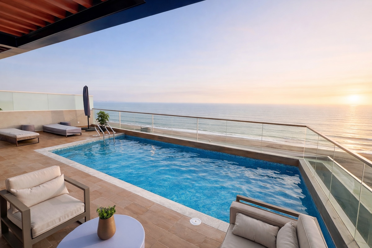 Роскошное жилье Airbnb с захватывающим видом на океан, сочетающее современную элегантность и максимальный комфорт. В квартале от НОВОГО «Пуэнте-де-ла-Пас». Отдохните в шикарном уютном жилье с современным кондиционером, молниеносным Wi-Fi и высококачественной бытовой техникой.Туалет TOTO. В пешей доступности от ресторана Maido №1 в мире (2025) и Central (2023), а также от лучших закусочных, кофеен, музеев и торгового центра Larcomar.