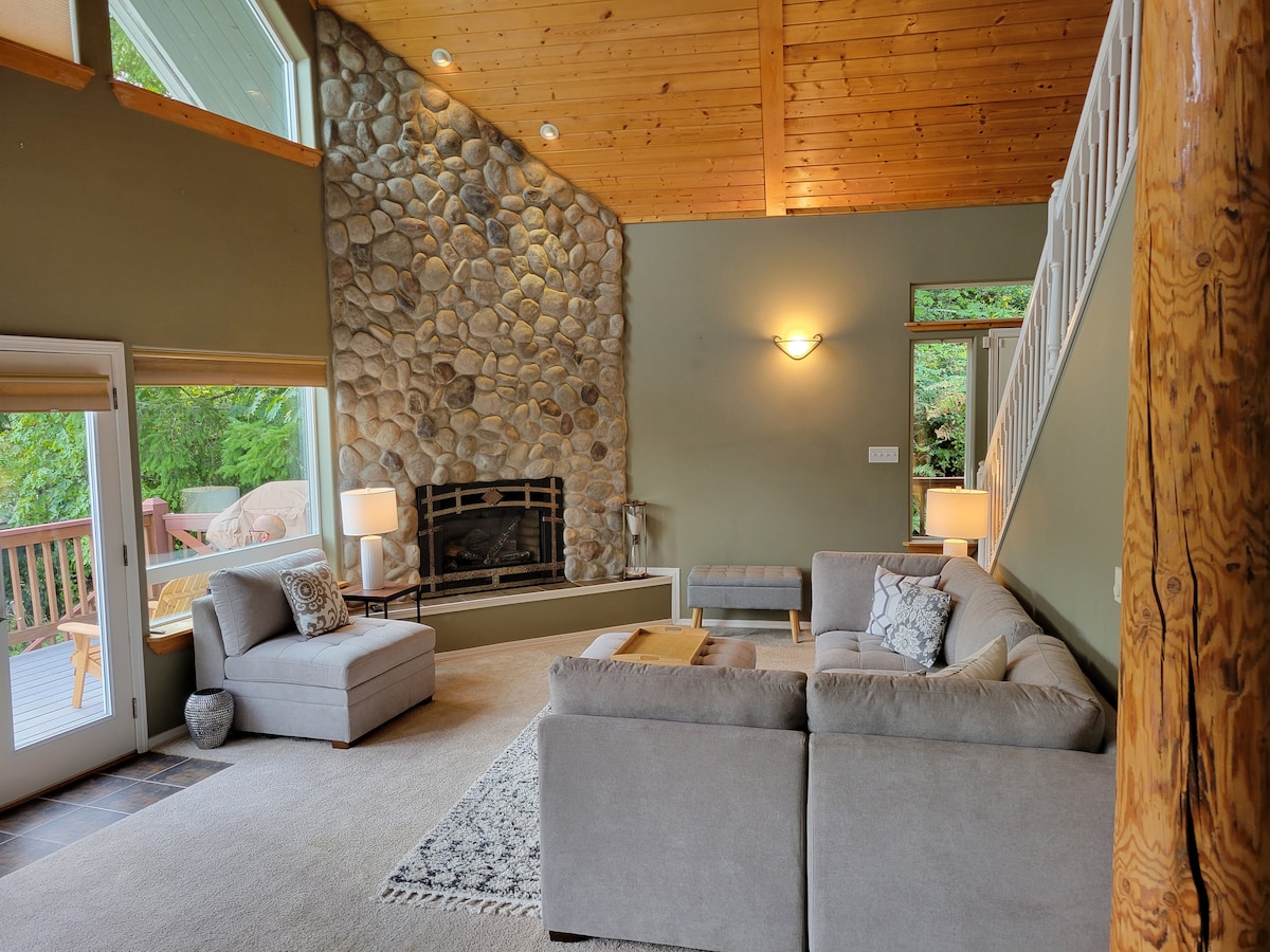 Добро пожаловать в ваш рай на набережной на канале Худ! Наш домик, расположенный прямо на воде, предлагает современный комфорт и деревенский шарм. Идеально подходит для романтического отдыха пары с друзьями или друзьями. 25 мин - Belfair (рестораны, продуктовые магазины). 95 минут - Сиэтл - 2 часа - «Олимпийский национальный парк». ОСОБЕННОСТИ ХИЖИНЫ: ☀ прямо на воде: следите за цаплями, тюленями и колясками с кровати! ☀ Частный пляж ☀ Камин, джакузи, гриль ☀ Водные игрушки и каяки ☀ Кровать с видом на воду ☀ Большая джакузи ☀ Дровяной камин.