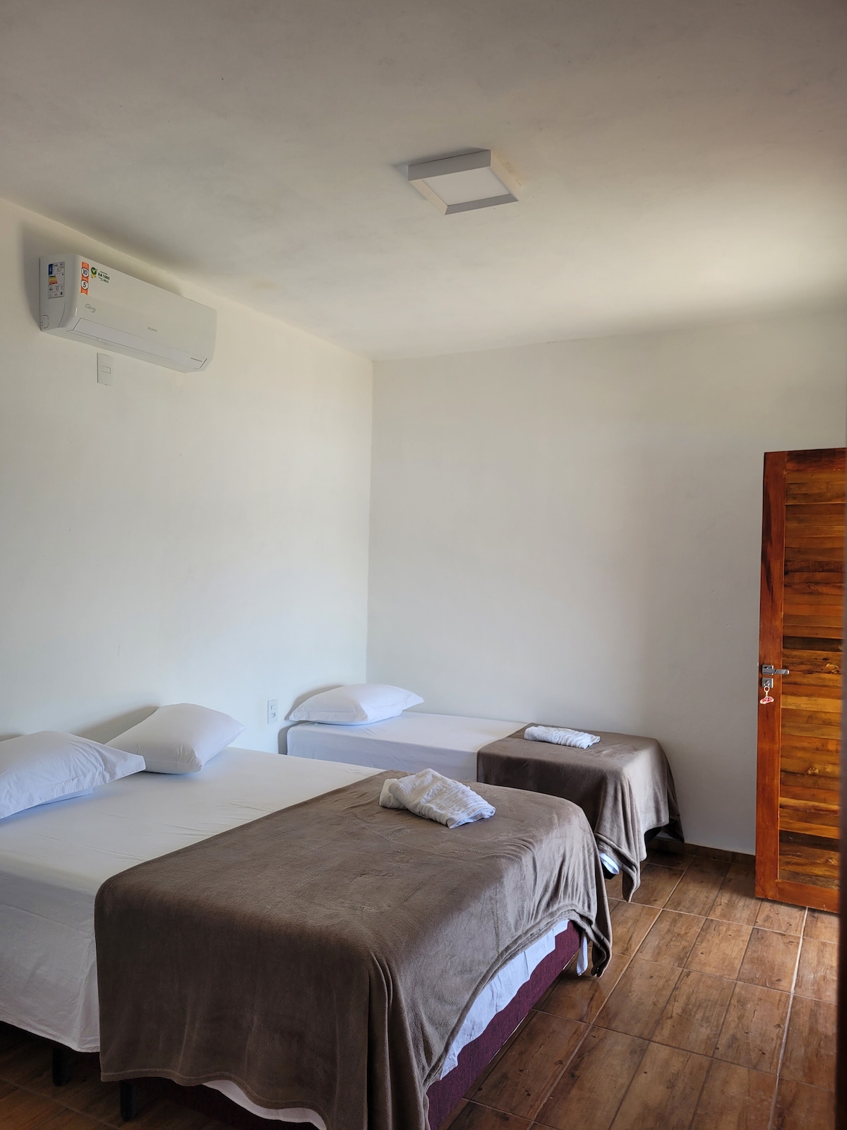 Дом находится в кондоминиуме, в городе Cássia MG, у подножья Серра-да-Канастра, с прямым доступом к плотине. Перед пароме в Дельфинополис. Люксы спроектированы как отдельные шале от главного дома, обеспечивая уединение. Мы предлагаем постельное белье и купание. В каждом люксе есть кондиционер, 1 двуспальная кровать размера Queen size, односпальная кровать и отдельные матрасы. Есть большой бассейн с кондиционером и гидромассажной ванной, откуда открывается потрясающий вид на плотину и захватывающий закат.