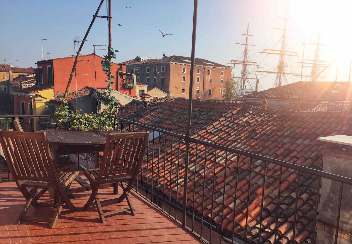 Апартаменты в пентхаусе с уникальным очарованием, антикварной венецианской мебелью и большой террасой с 360° видом на Венецию, включая множество церковных вершин и даже башню Святого Марка. Расположен в историческом дворце XVII века Palazzo Gradenigo в Рио-Марин, одном из самых романтических каналов города в районе Санта-Кроче; с легким и быстрым доступом в 5 минутах ходьбы от железнодорожного вокзала и площади Рима (автомобиль или автобус из аэропорта). Яркий, романтический, исторический.