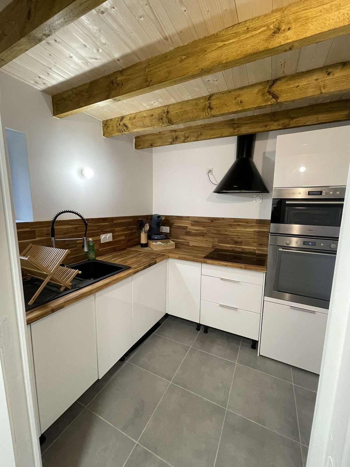 Мое жилье расположено на главной улице Кастильон-ла-Батейл, недалеко от магазинов. У вас есть отдельный вход в гостиную, мини-кухня со всем необходимым для приготовления пищи . Наверху спальня (кровать будет заправлена) и напротив ванной комнаты (есть полотенца). Вы находитесь в 10 минутах езды от Сент-Эмильона , в 45 минутах езды от Бордо и менее чем в двух часах езды от Сарлата.