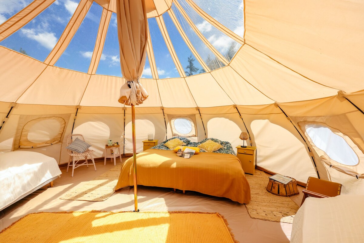 Приезжайте и оторвитесь от реальности в улье! Вы будете окружены дубовым лесом. Эта палатка Lotus с прозрачной крышей даст вам возможность увидеть звезды. Вы можете воспользоваться своим коконом, чтобы зарядиться энергией. В распоряжении гостей отдельные ванные комнаты. Завтрак, включенный в цену, подается перед вашим домом или в нашей комнате. И, возможно, у вас будет возможность увидеть оленя, когда проснётесь в поместье.