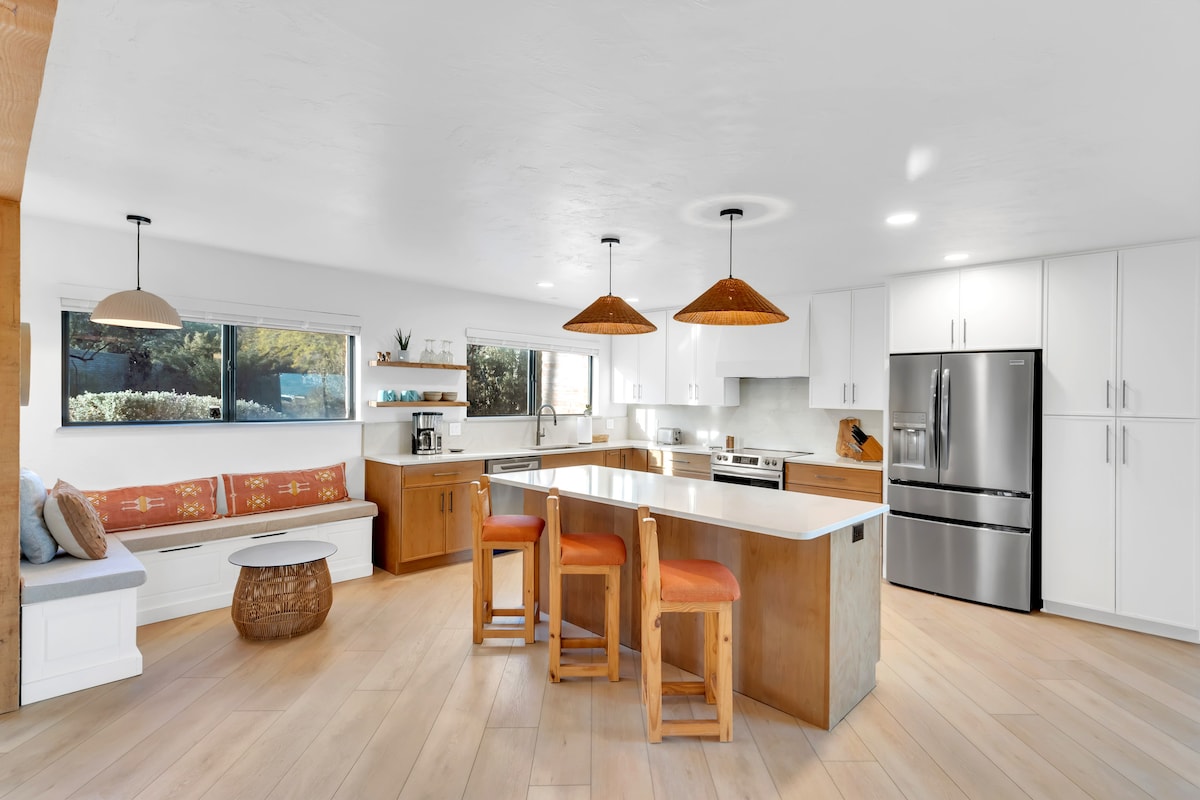 KD HAUS is perfectly situated in the heart of the Catalina Foothills. This 4-bedroom, 3-bath Tucson vacation rental is ideal for families and groups. Enjoy quick access to top hiking trails, championship golf courses, shopping and some of Tucson’s most premier dining spots. The home features stunning mountain views from nearly every window, a relaxing pool, and beautiful desert sunsets. Designed for comfort, this Foothills retreat is the perfect home base for your Southern Arizona getaway
