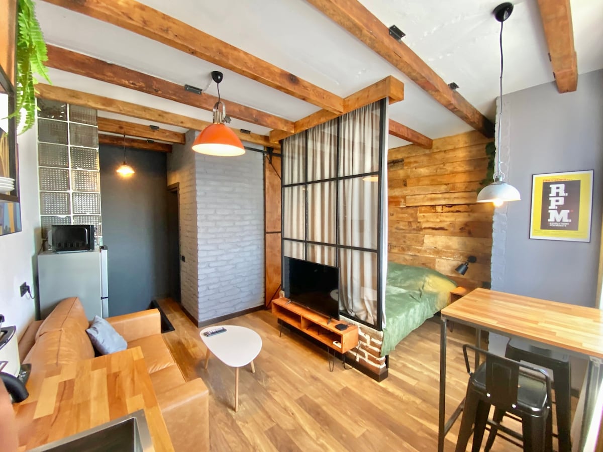 Расположено в престижном центральном районе Тбилиси. Этот стильный лофт расположен в новом роскошном здании в уютном районе Round Garden и сочетает в себе винтажный и городской дизайн со спокойной атмосферой. Идеально подходит для удаленной работы — быстрый Wi-Fi, естественное освещение и спокойное, вдохновляющее пространство также для длительного проживания или целенаправленных деловых поездок.