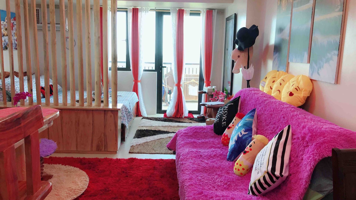 Здравствуйте, мэм/сэр , вы можете забронировать мгновенно, если захотите остановиться у нас. Студия площадью 40 кв. м с собственным большим балконом . Освежающий вид с балкона определенно удовлетворит вас на 100%. Где вы можете почувствовать прохладный ветез Tagaytay.smooking и« умеренное питье в зоне балкона разрешено. Wd netflix..рядом с торговым центром ayala Mall serin и другими ресторанами Bulalo. Очень доступно для всех видов общественного транспорта. Поездка из Манилы/лагуны.