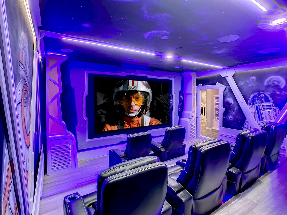 150-дюймовый 4K кинотеатр, бассейн и спа, 16 спальных мест