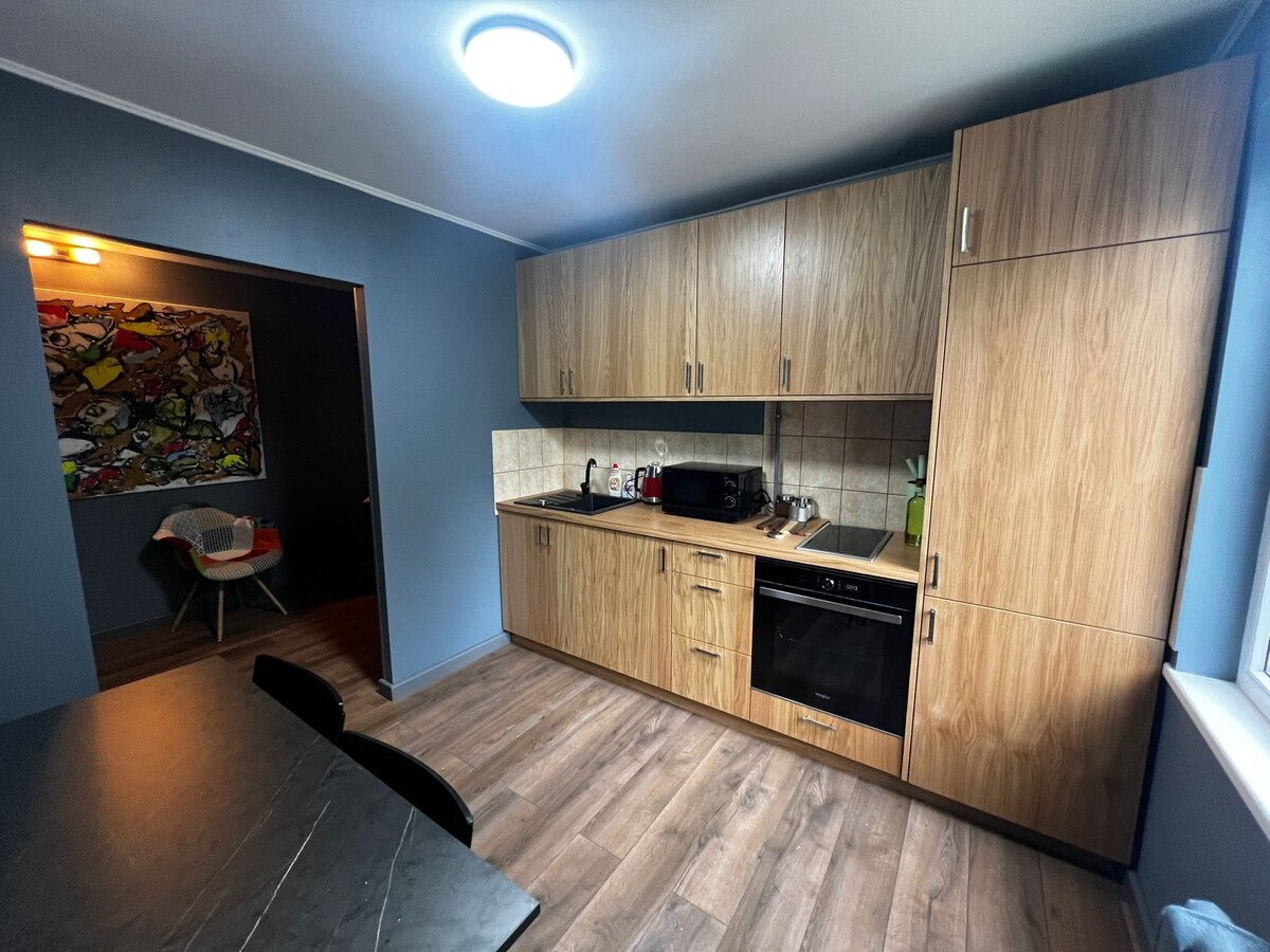 Newly renovated fashionable apartment with stunning birch view from windows. Modern, comfortable interior, new furniture. Fully equipped apartments, everything for your comfort. Smart TV (youtube, www), digital channels, unlimited Wi-Fi. Free parking in the yard. List of recommended shops, cafe, attractions etc and it's location will be available on place.
