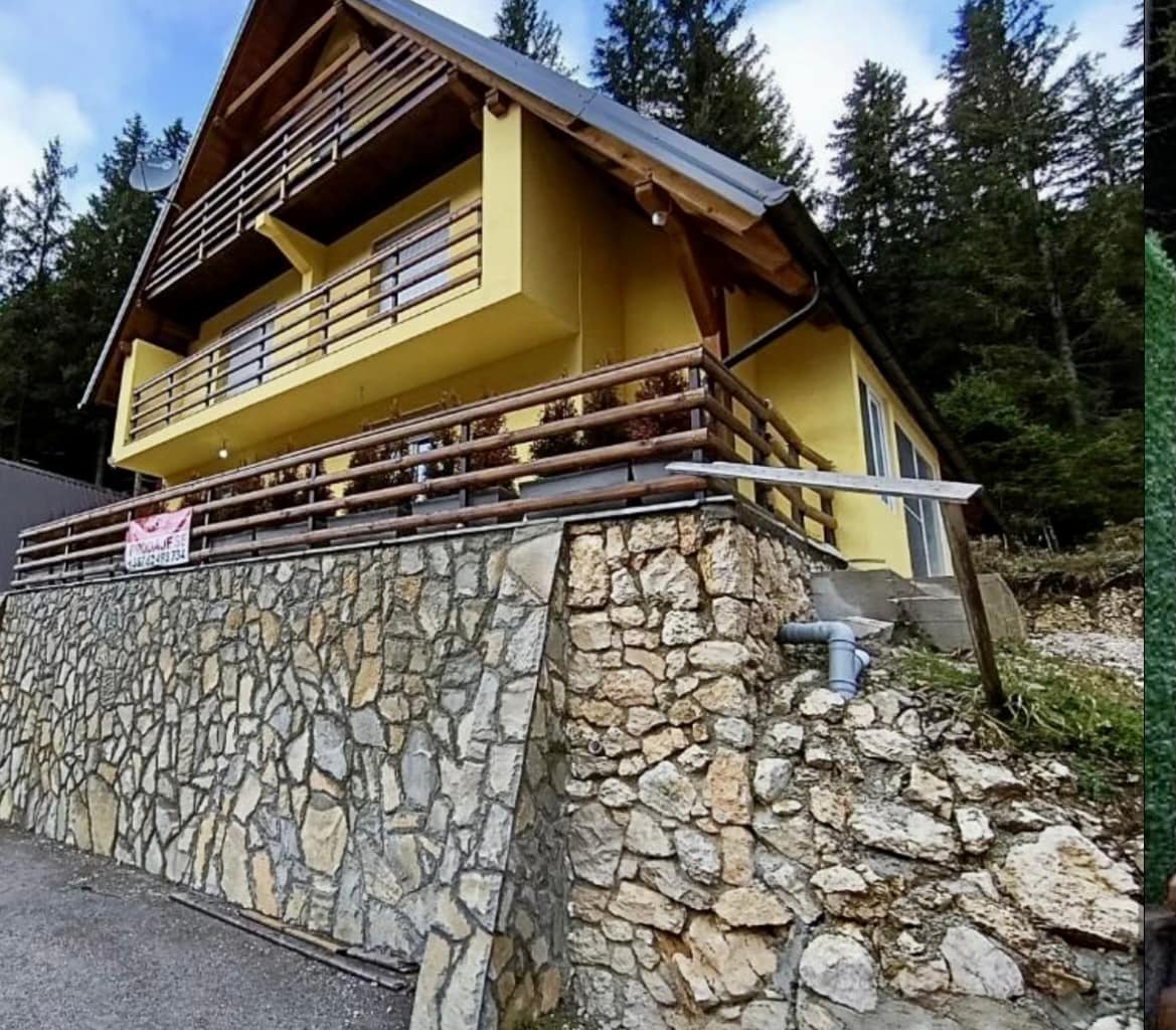 Наш горный дом Goldy находится в центре горы Влашич в Боснии. — 55 м² внутреннего пространства класса А. Прямой вид на лыжную трассу. 2 ванные комнаты (бесплатная косметика). Кухня со всем оборудованием. 3 спальни (4 односпальные кровати). 1 большая двуспальная кровать. Гостиная: 1 диван-кровать. Встроенный камин (бесплатная древесина на 7 дней). 1 плита + 3 дополнительных электрообогревателя. Пресная вода круглосуточно, бесплатный Wi-Fi, телевизор, система безопасности Alam, генератор и полная помощь при необходимости. Отдельный вход, собственный безопасный балкон + барбекю, собственная бесплатная парковка.