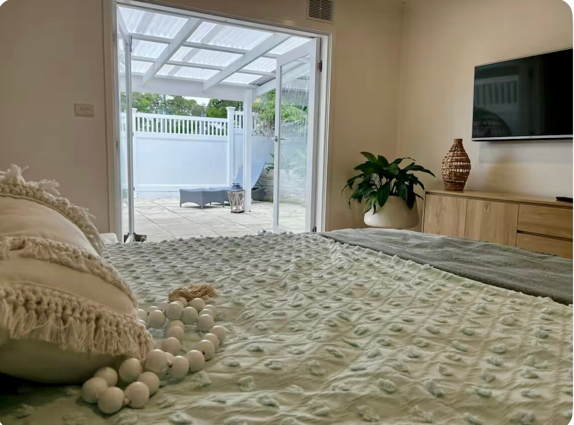 NEST AT BLUE BAY - это роскошное жилье для пар, расположенное в центре двух живописных заливов, Blue Bay и Toowoon Bay. Оба пляжа находятся всего в 5 минутах ходьбы от модных местных кафе и бутиковых ресторанов в деревне менее чем в 200 метрах. Закаты у озера обязательны, 20 минут пешком. Nest подходит для 2 гостей (1 СПАЛЬНЯ С КРОВАТЬЮ размера King size + роскошная ВАННА, ДУШ и небольшая МИНИ-КУХНЯ, гостиная и отдельная терраса. Прачечная и навес для автомобиля) На террасе есть барбекю с капюшоном.
