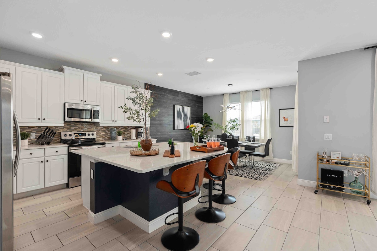 Потрясающее совершенно новое современное роскошное жилье на курорте Encore Reunion. МОЖНО С ПИТОМЦАМИ и в нескольких минутах от всех тематических парков. СОВЕРШЕННО НОВЫЙ ДОМ. Частный бассейн и спа / Игровая комната / Кинозал / Тренажерный зал / Массажное кресло / Камин / PS5 / Настольные игры и многое другое. Насладитесь необыкновенным и забронируйте проживание в нашем доме, где роскошь и развлечения объединяются для незабываемого отдыха. ** Пожалуйста, ознакомьтесь с правилами до бронирования. Доступ в аквапарк не включен в стоимость. **