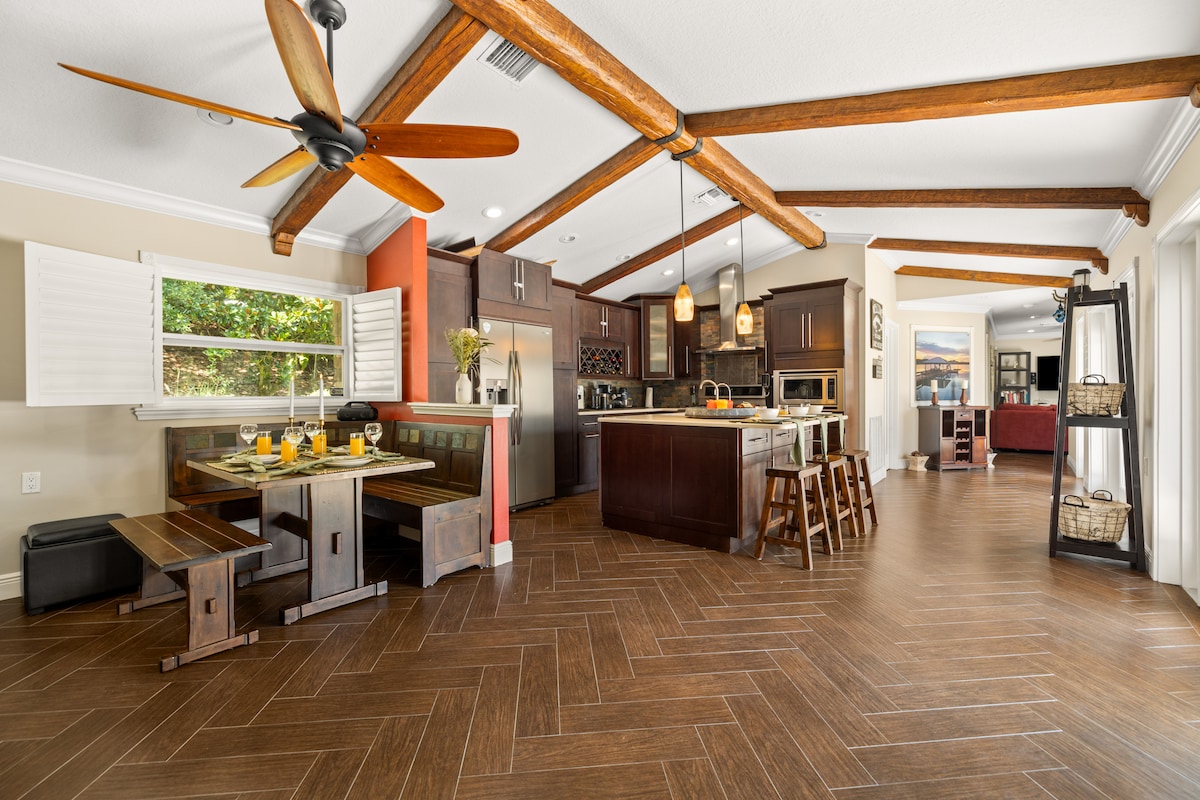 Это отличное расположение в 30 минутах езды до аэропорта, в 35–45 минутах езды на запад до тематических парков и парков с аллигаторами (Disney, Universal и т. д.). 45–60 минут езды на восток до потрясающих атлантических пляжей и Космического побережья. После приключений отдохните в спокойном природном ретрите площадью 12 акров с кипарисовыми деревянными стенами и сводчатыми потолками. Расслабьтесь в бассейне и превратите семейную комнату в собственный кинотеатр! **Несанкционированные вечеринки/мероприятия запрещены, ДЛЯ ПОЛУЧЕНИЯ ИНФОРМАЦИИ О БАССЕЙНЕ РАСШИРЬТЕ ДОПОЛНИТЕЛЬНЫЕ ПРАВИЛА ДОМА.