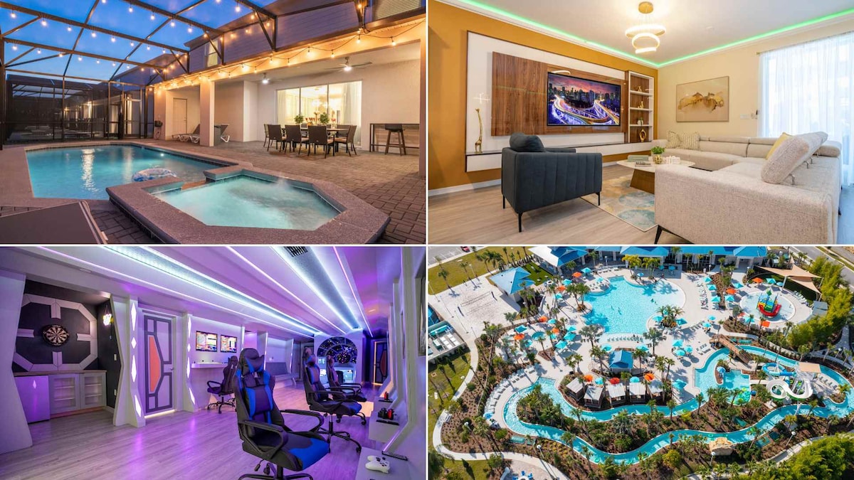 Удивительный совершенно новый роскошный дом на курорте Encore Resort @ Reunion. МОЖНО С ПИТОМЦАМИ и в нескольких минутах ходьбы от тематических парков. СОВЕРШЕННО НОВЫЙ ДОМ. Отдельный бассейн и спа / игровая комната / кинотеатр / тренажерный зал / массажное кресло / камин / PS5 / настольные игры и многое другое Воспользуйтесь необыкновенным и забронируйте пребывание в нашем доме, где роскошь, развлечения собираются вместе, чтобы провести незабываемый отдых. ** Пожалуйста, ознакомьтесь с правилами до бронирования. Доступ к аквапарку не включен. **