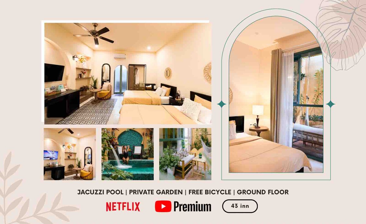 Откройте для себя эту очаровательную виллу, расположенную в центре Старого города Хойана, где царит гармония современности и традиции. Минималистичный дизайн с теплой деревянной мебелью Отличное расположение — 5 минут ходьбы от Старого города Хойана. Очаровательный вид на романтическую реку Хоай и сад. Из номеров на крыше открывается вид на город и реку Просторные комнаты с большими кроватями и мягкими матрасами. Бассейн Бесплатные велосипеды Получите бесплатную карту для вашего удобства Банкомат, рестораны и магазины поблизости.