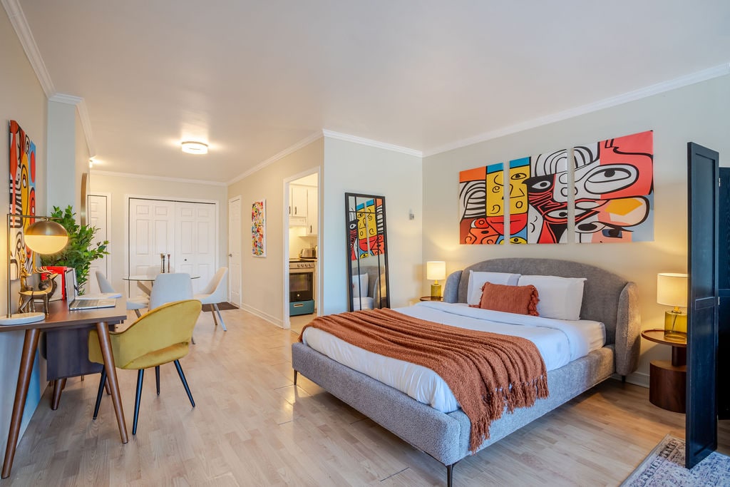 Experience refined urban comfort in the heart of Montréal’s Golden Square Mile, one of the city’s most prestigious and walkable neighborhoods. This modern 1-bedroom suite comfortably accommodates up to 6 guests with a queen bed and two sofa beds, perfect for couples, families, or business travelers seeking style and convenience.